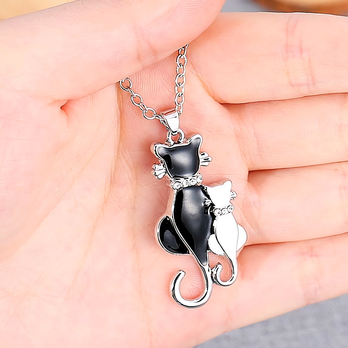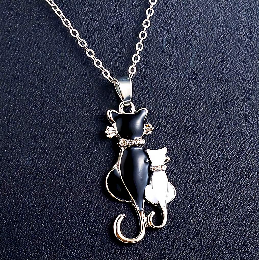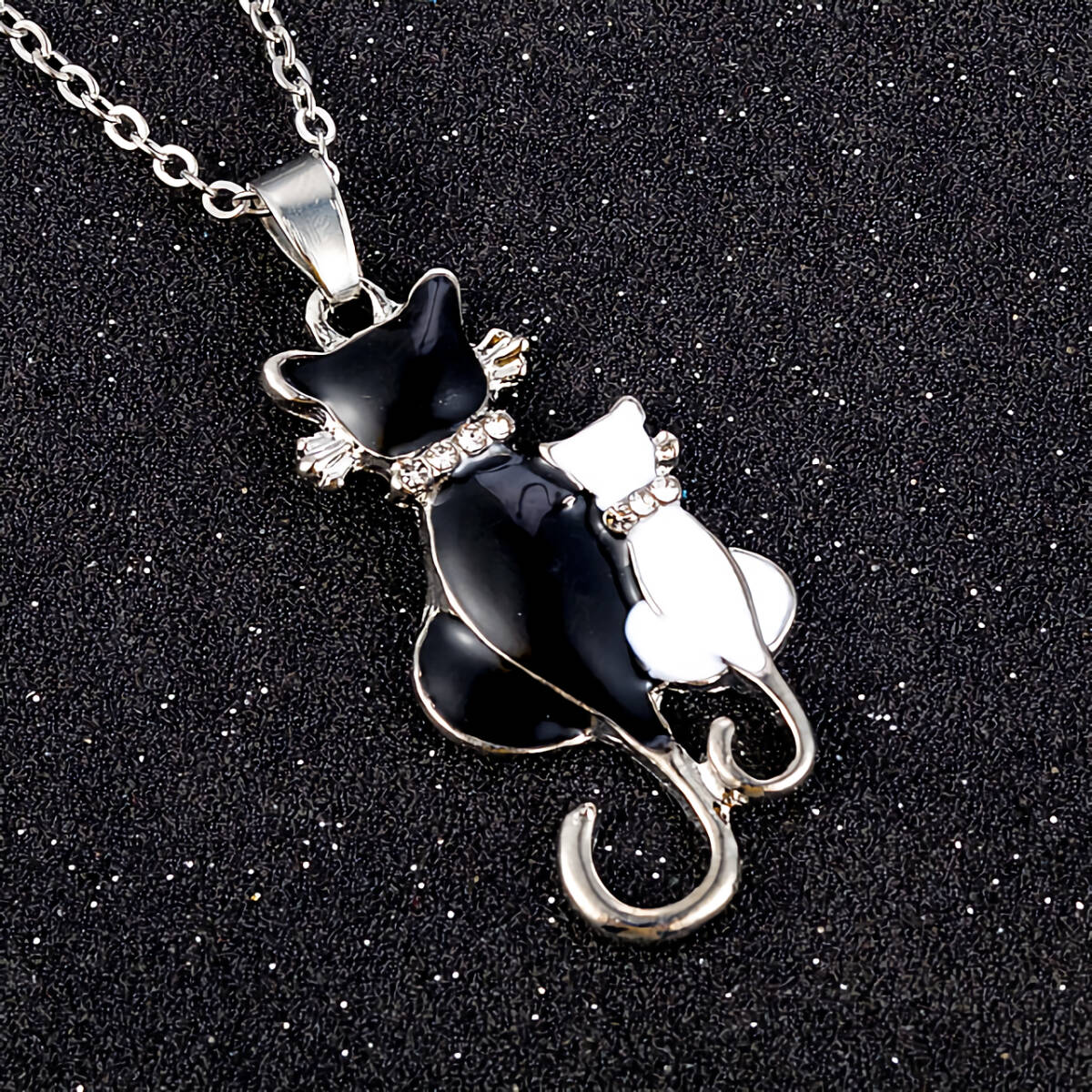 新品1円~★送料無料★白黒キャットカップル猫ダイヤプラチナ仕上925シルバーネックレス誕生日プレゼント旅行連休秋祭冬正月ギフト国内発送