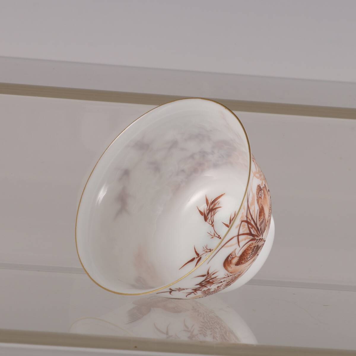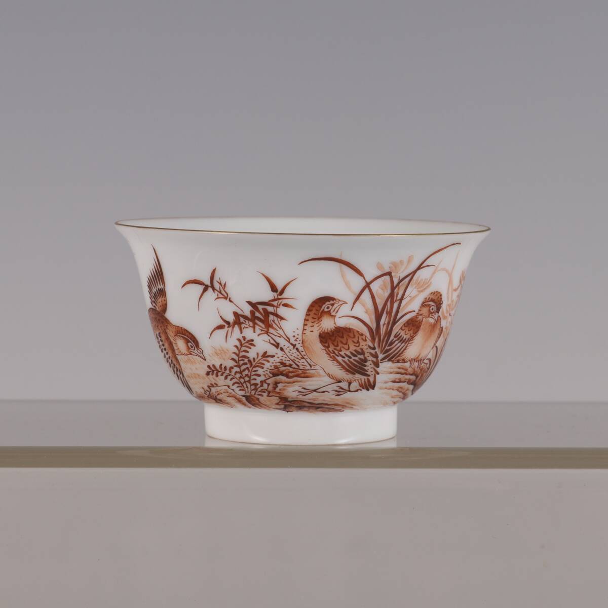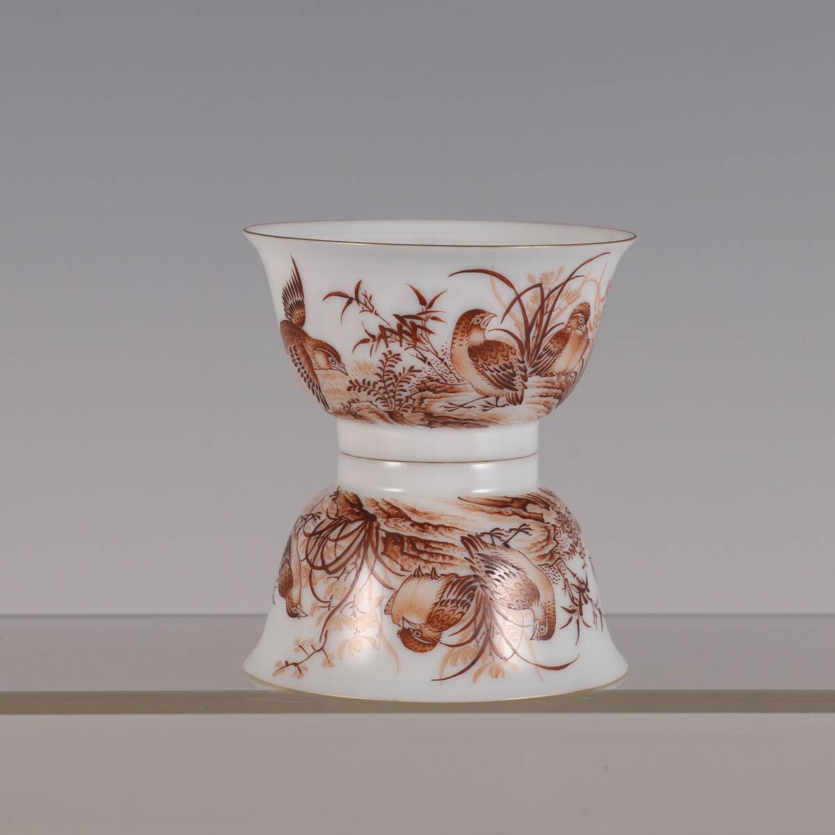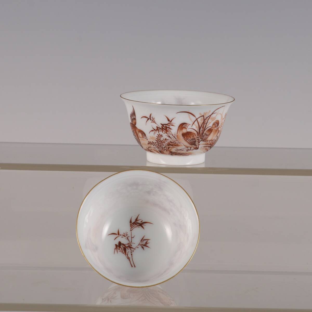 品名:礬紅彩鶉内暗刻纏枝蓮杯一対