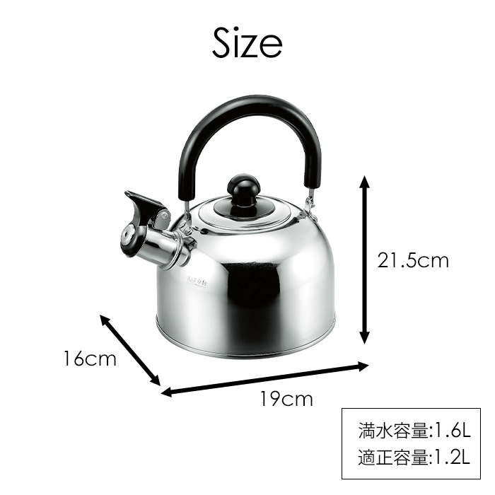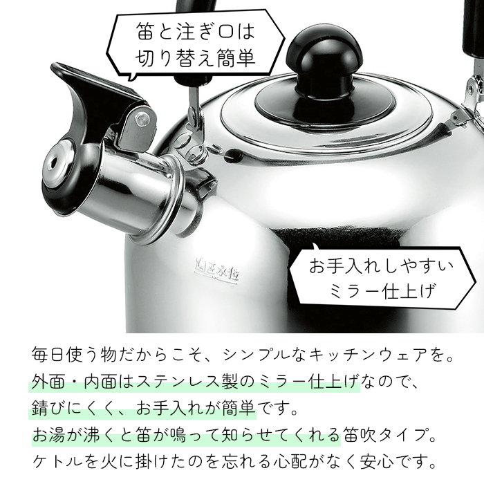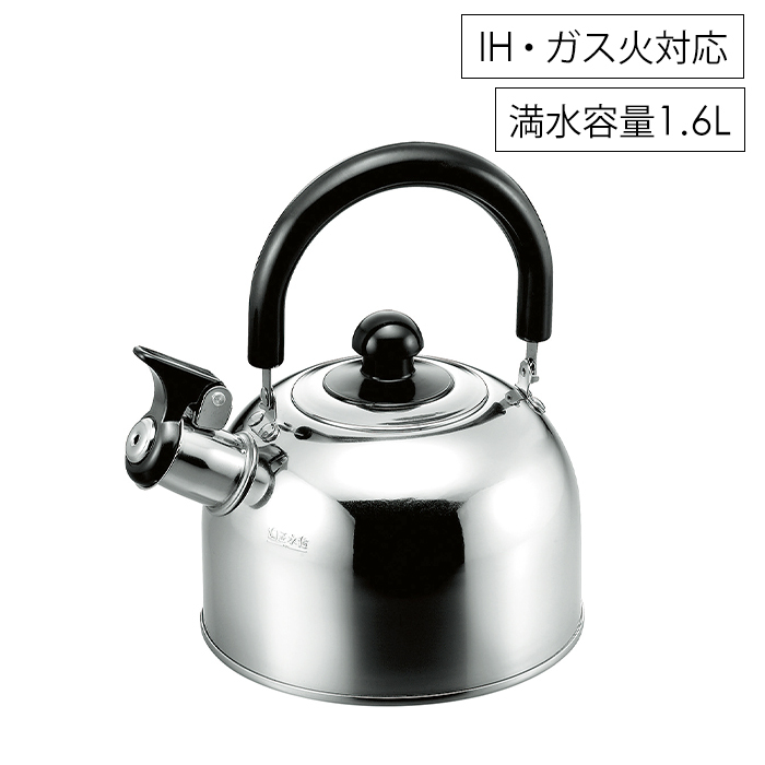 ケトル 笛吹 満水容量1.6L シンプル ミラー仕上げ ガス火 IH対応 お手入れ簡単 MHRSK-0066