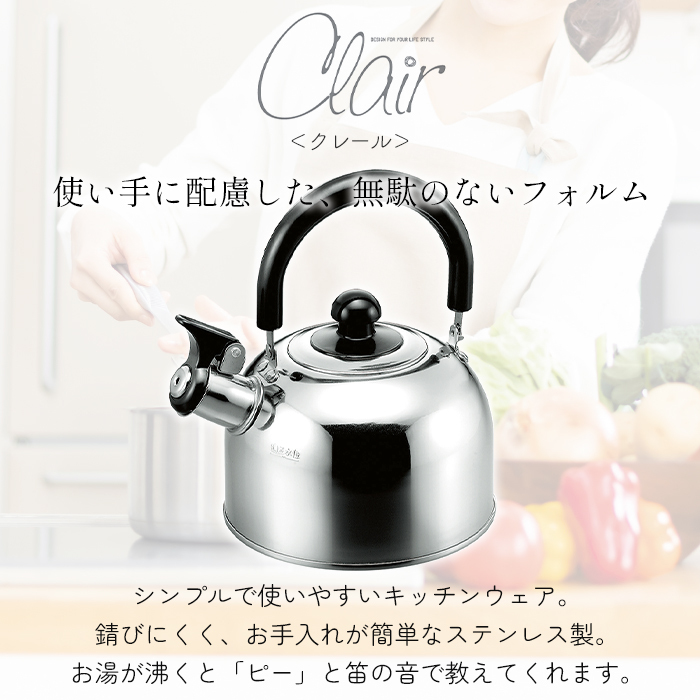 お湯が沸騰すると笛が鳴ってお知らせします。