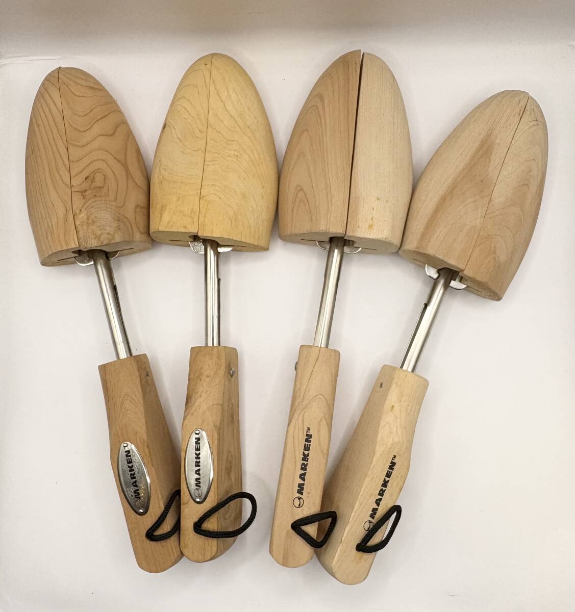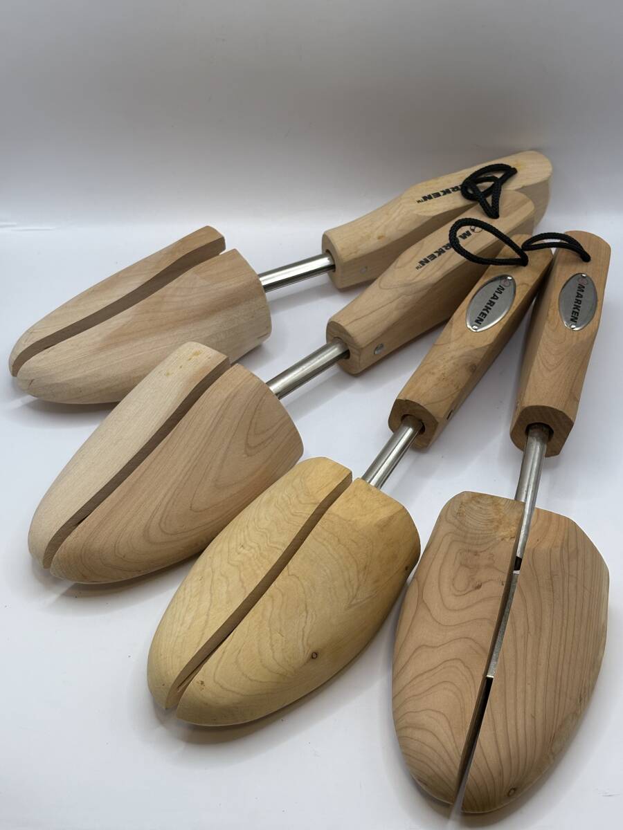 長く定番として愛されているマーケンのレッドシダーシューツリー、新旧ロゴの2組セットです。