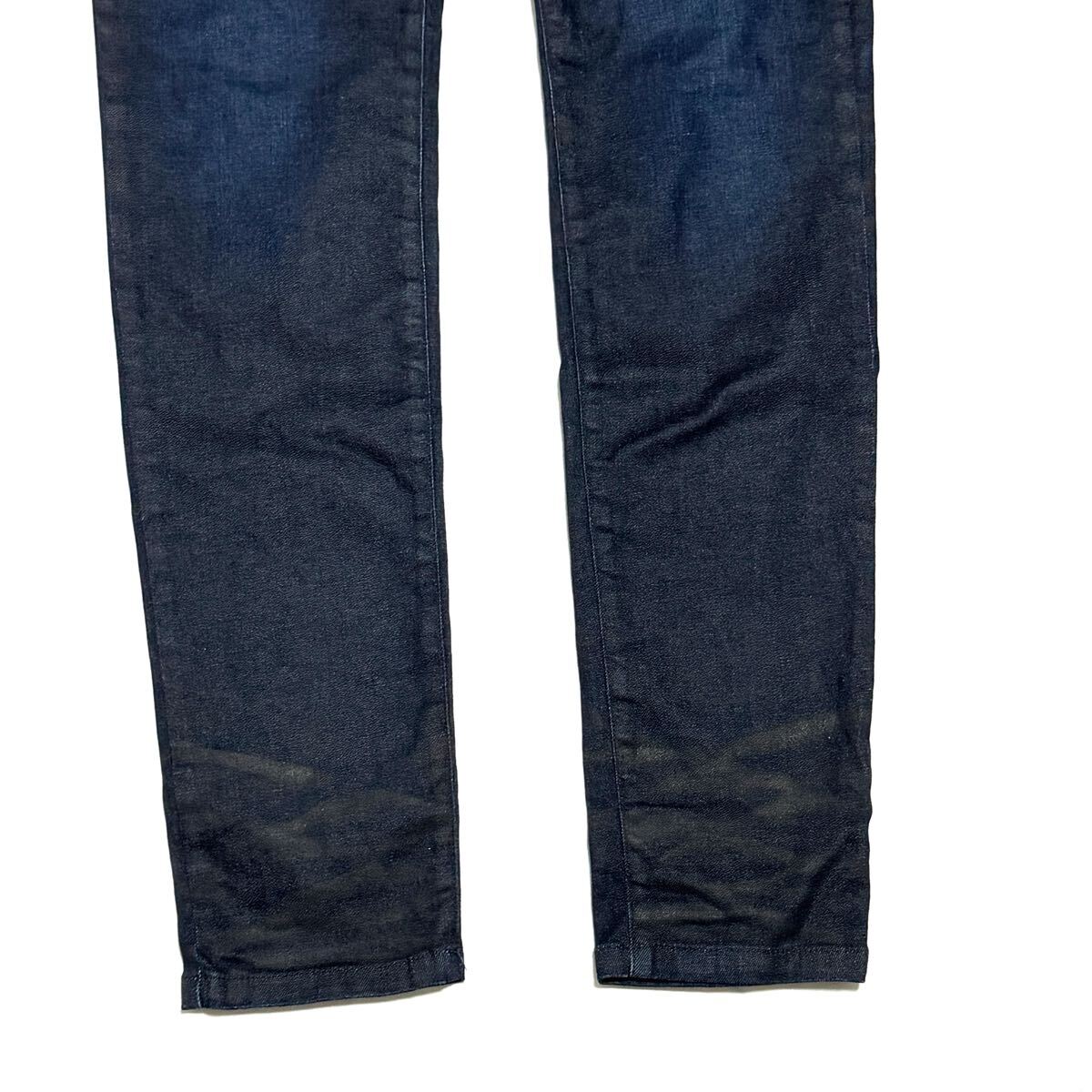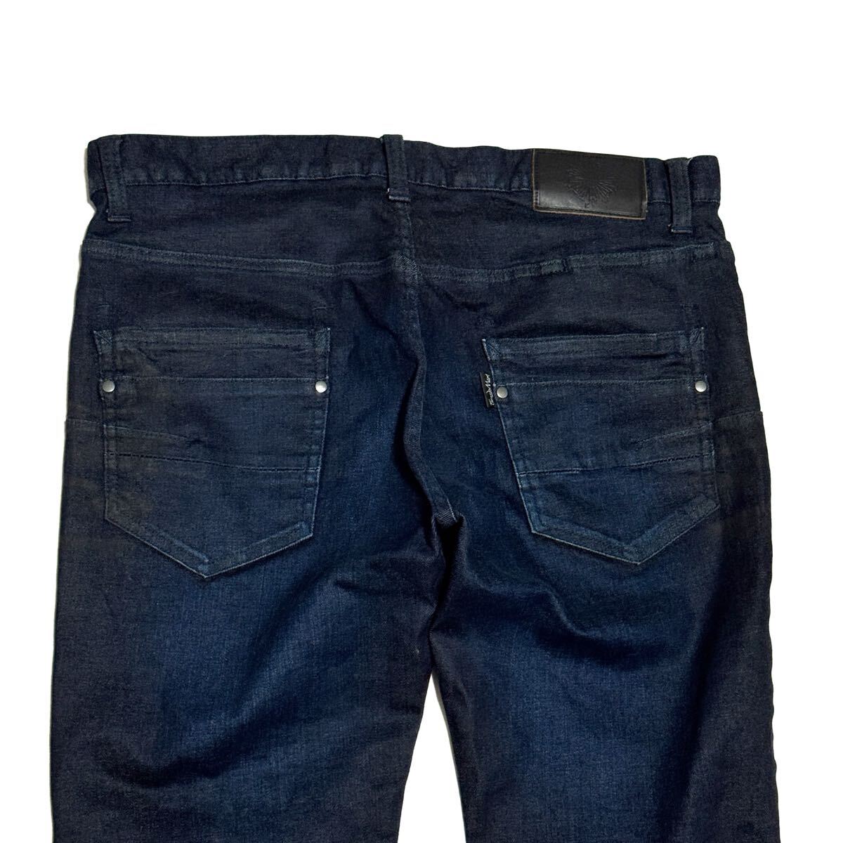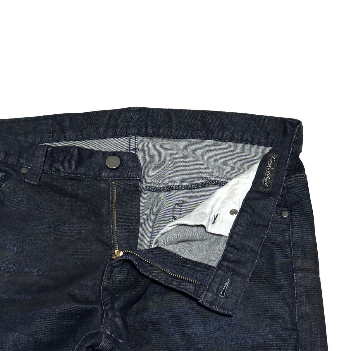 Tornado Martの日本製ジーンズです。存在感抜群の鬼ヒゲ加工が魅力。生地はコットン98%・ポリウレタン2%で、弱ストレッチ入り。シルエットはスリムでスタイリッシュ、タイトめに穿きこなしたい方におすすめです。ウエストはゴム仕様で44〜47cmまで対応。美品でコンディション良好。完売必至の人気モデル!