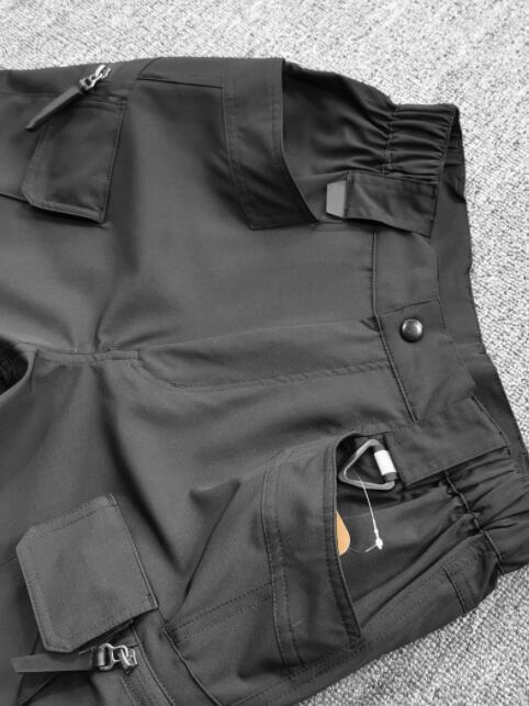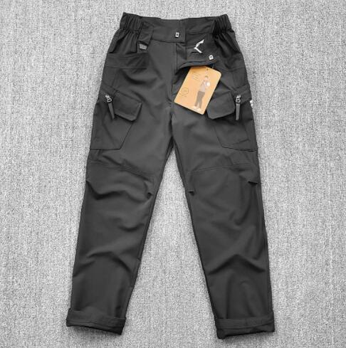 上質L 新品 ソフトシェル ワークパンツ メンズ サマー パンツ 薄手 ストレッチ 春夏 イージーパンツ ウエストゴム ロングパンツ/ブラック