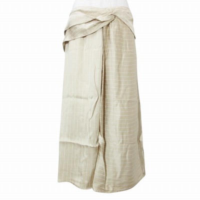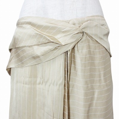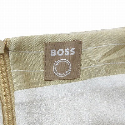 ヒューゴボス HUGO BOSS BOSS スカート ラップ風 フレア 膝下丈 ストライプ ボーダー 日本サイズL相当 I42 US6 UK10 FR40 ゴールド IBO51 X レディース
