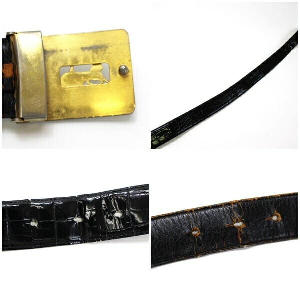 ★ 馬車柄のバックルの付いたお洒落で素敵なベルトです。エナメルの型押しがお洒落です。 ★【状態】 ・表 小傷、スレ、縁はがれ、ベルト穴傷み、穴周り付近折れ、しわ ・裏 小傷、スレ、しわ、ベルト穴傷み、レザーはがれ ・バックル 小傷、スレ、メッキ剥がれ 【特記事項】 全体的に傷みがみられますが、まだまだお使い頂けます。 |