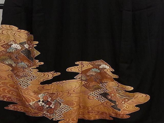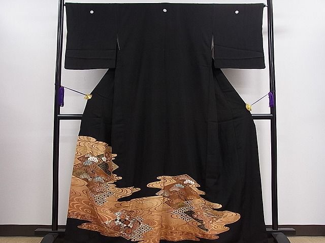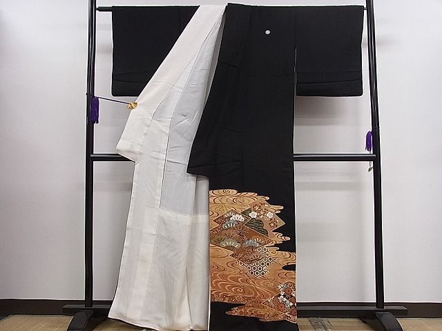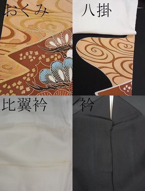 | 【正絹・五つ紋・比翼仕立て】 状態は接写画像のようにおくみ・八掛・比翼衿に薄いシミ、衿に薄い汚れがございますが その他特に目立ったシミ汚れなどもなく大変良い状態です。 大変上質な逸品になります。 お安く出品致しますので、是非この機会にいかがでしょうか?
