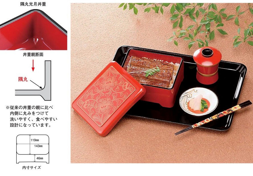 ☆業務用漆器丼重(内隅丸)新光月吟朱内朱塗10個色々なお重料理に越前塗日本製新品