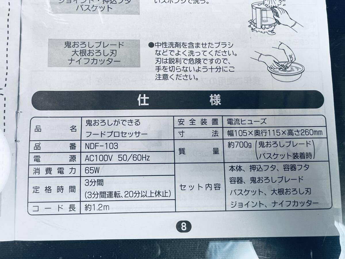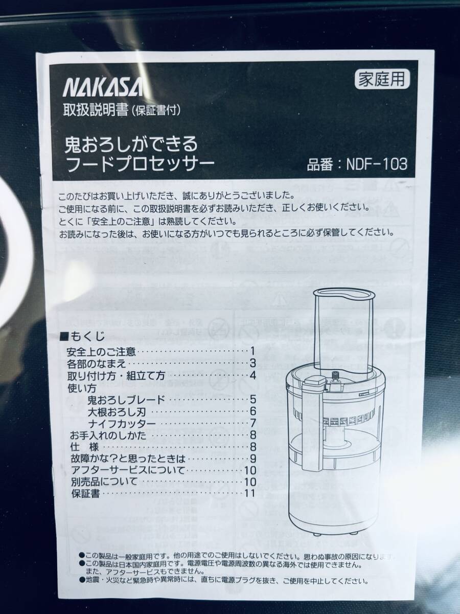 新品未使用 NAKASA 【鬼おろし フードプロセッサー NDF-103】 訳有 動作OK 電化製品 家電 キッチン 調理器具 大根おろし ミキサー