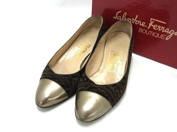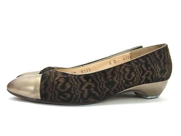 Salvatore Ferragamo フェラガモ スエード×レザー ヒール パンプス サイズ6(約23.5cm) 靴 ブラウン系 DF8169