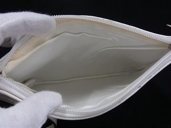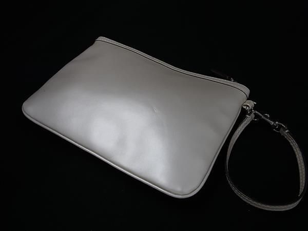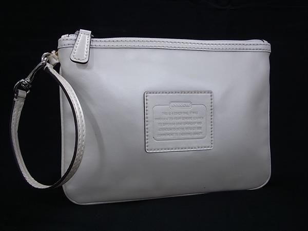 COACH コーチ レザー ワンハンドル ミニハンドバッグ マルチポーチ マルチケース 小物入れ メイクポーチ ホワイト系 DE8482
