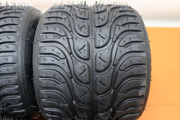 カート用タイヤ4本の出品です。見た目は未使用品のようですが、確実に未使用かどうか把握できていないため、未使用に近い中古品としています。刻印が見当たらず製造年についてはあいにく不明です。触った感触では柔らかく感じましたが、カート用タイヤについて知識、経験のない素人判断ですのでご理解下さい。商品詳細・適合については専門店様にお尋ね頂ければ幸いです。宜しくお願い致します。 |