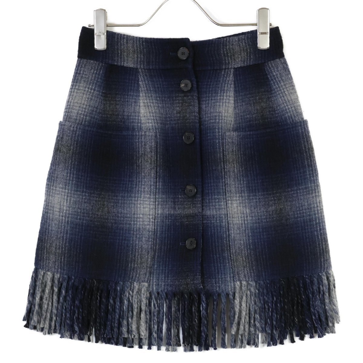 Christian Dior クリスチャンディオール ブルー チェックウールスカート 050J40A1285 ブルー 34 スカート ウール レディース 中古