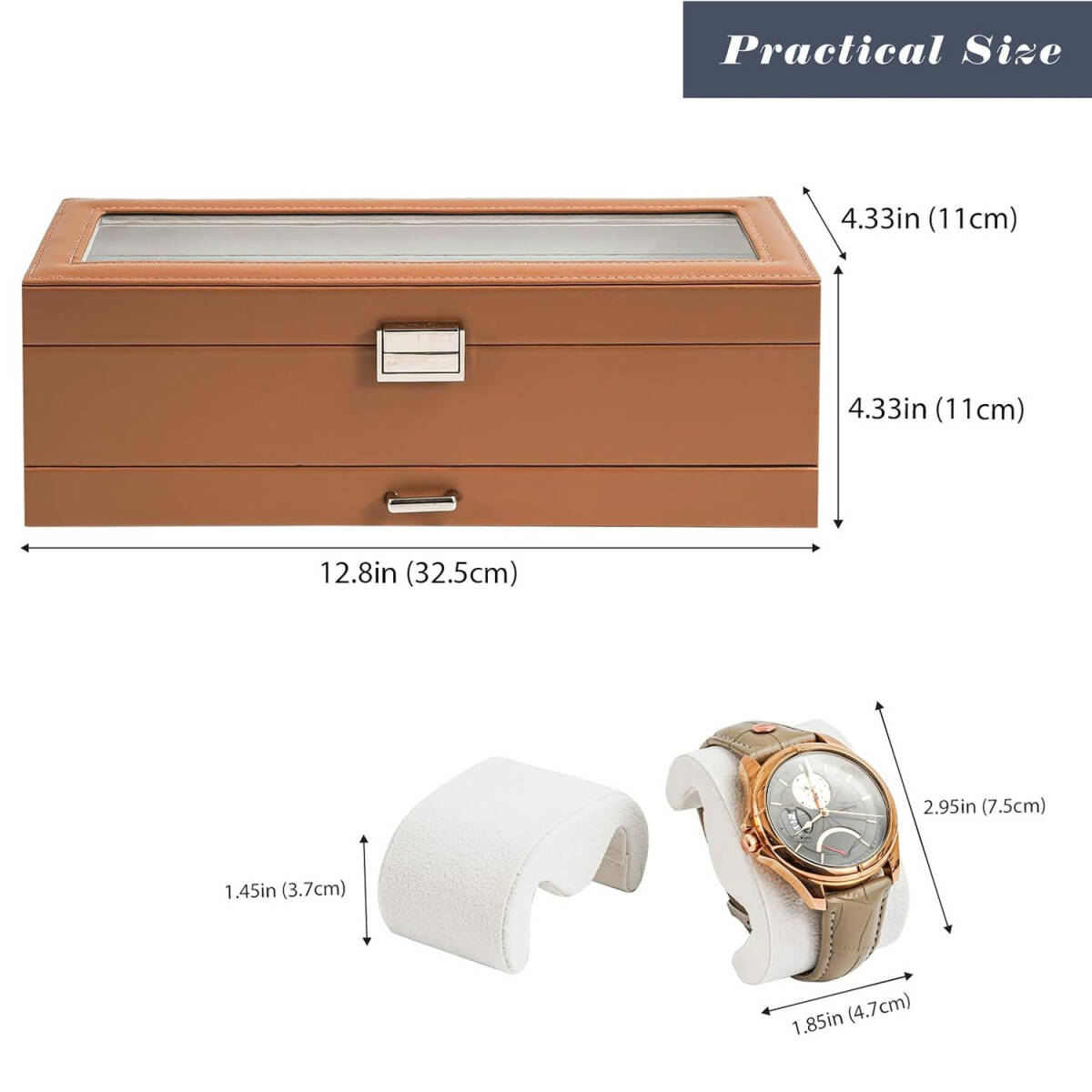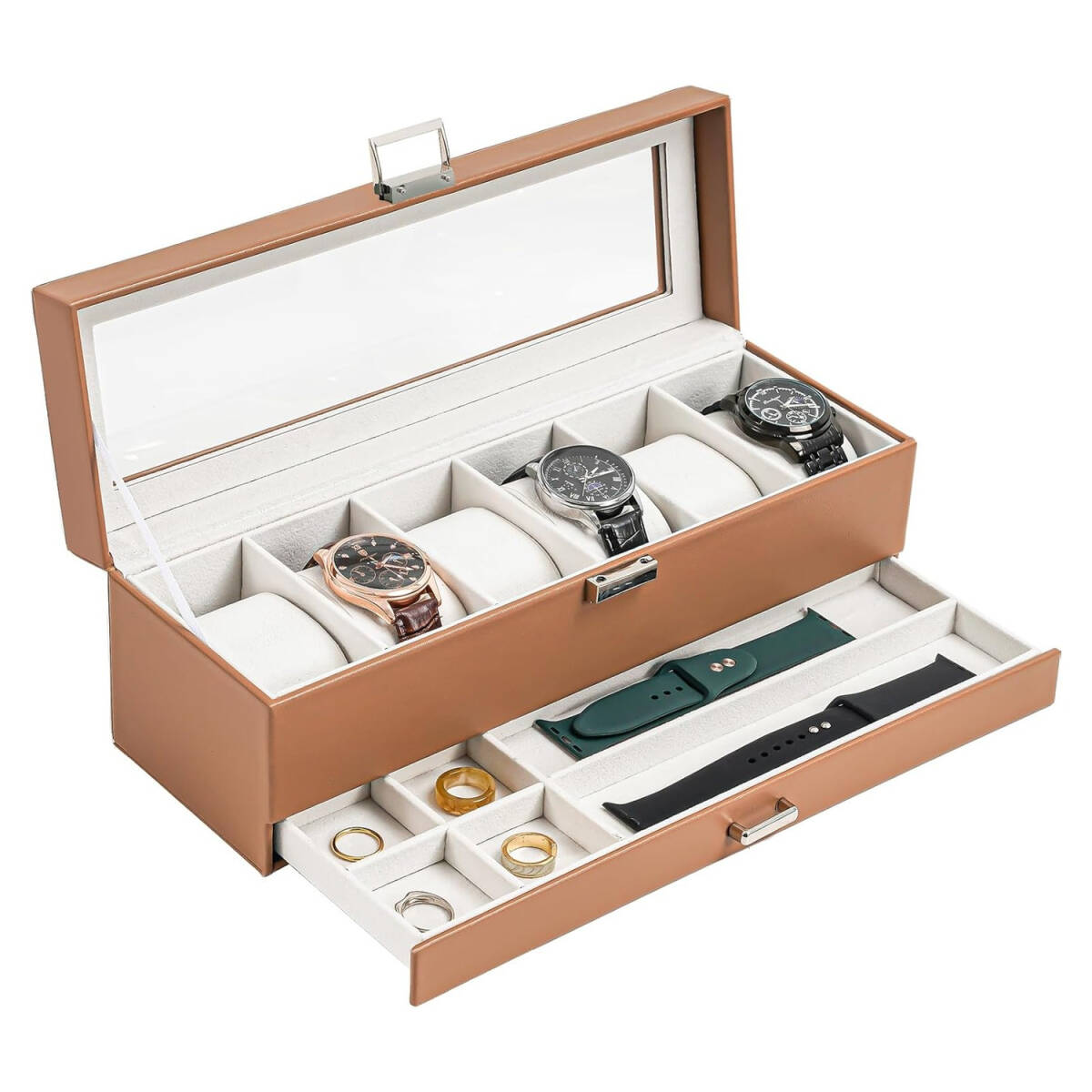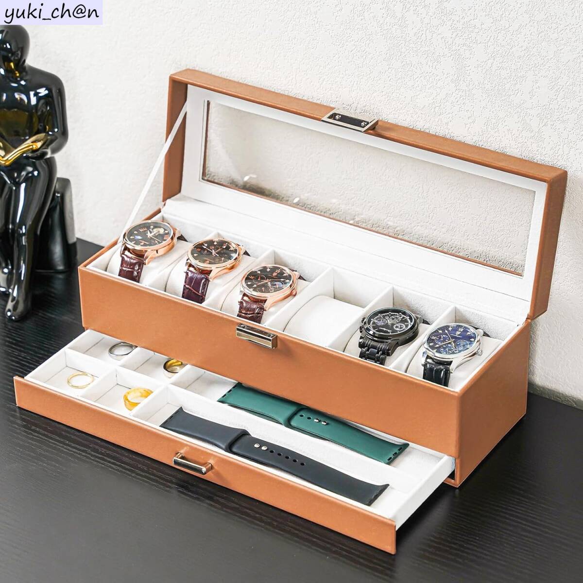 腕時計ケース 6本用 カーキー PUレザー ウオッチボックス アクセサリー収納 ガラス天板 ディスプレイケース 小物 プレゼント