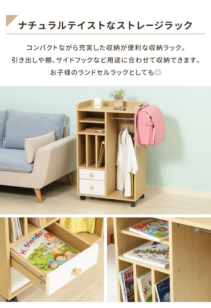 | ランドセルラック 収納ラック 幅58cm ハンガーラック 本棚 収納家具 勉強道具 入学準備 お片づけ キッズ収納 マルチラック 収納棚 木製ラック ランドセル置き 洋服収納 飾り棚 引き出し リビング収納 衣類 教科書 絵本 カバン マルチに使える ナチュラル 北欧風 おしゃれ リビング 子ども部屋 ホワイト ナチュラル |