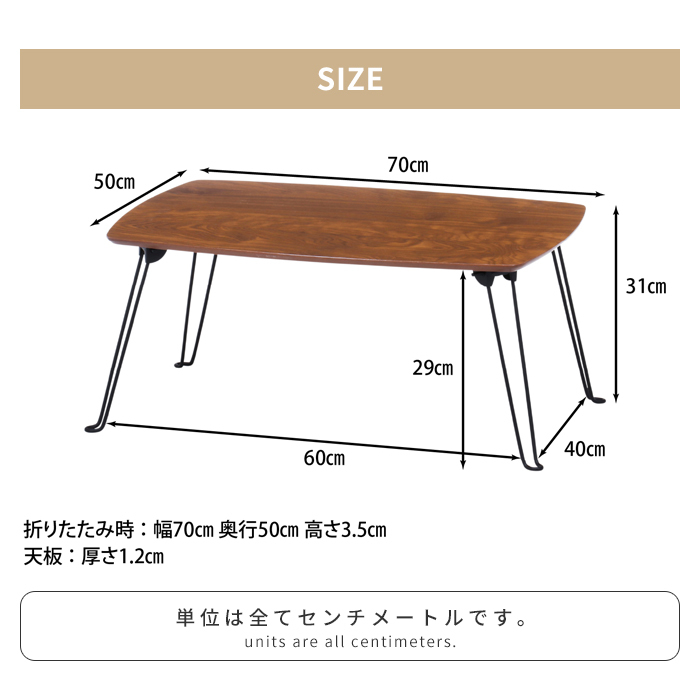 [全体]幅70×奥行50×高さ31cm [天板厚]1.2cm [折畳時]70×50×3.5cm |
