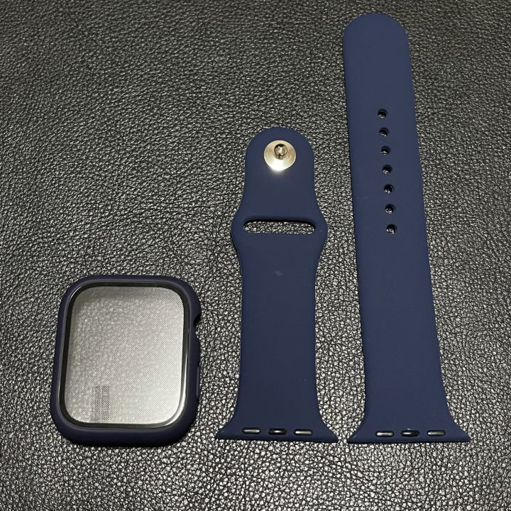 【2点セット】アップルウォッチ 45mm対応 ケースカバー+スポーツバンド 「ネイビー」バンドサイズ Lサイズ apple watch シリーズ 7 8