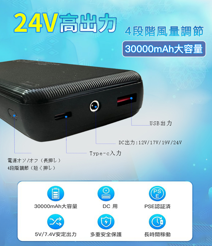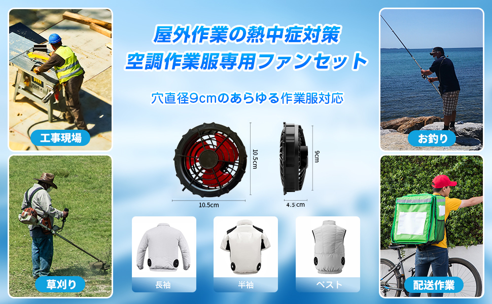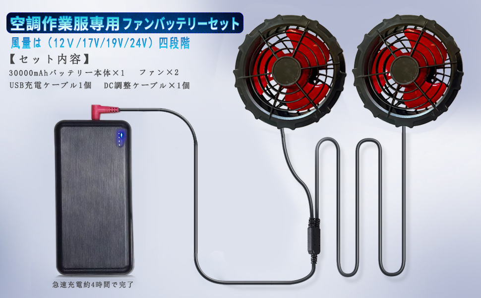 | 商品説明 | ★【セット内容】】ベスト*1、 30000mAhバッテリー*1、 ファン*2 、 DC接続ケーブル*1、 接続ケーブル*1 。 ★【24V超高出力&作業服専用 ファンバッテリーセット】夏最新、空調作業服ファンは航空力学を応用した流線型3枚大面積羽根が搭載して、風の抵抗を35%低減し、風が中心に集まり直進性が高く、パワフルな風を生み出します。30000mAh大容量専用バッテリーが搭載され、ワンボタンで12V-17V-19V-24Vに4段階切り替えるだけでなく、同類製品に比べると24V最強風量モードでもパワーが一定で、風量が弱くならないでずっと115リットル/秒で服内に暴風を送ります。真夏のべたつく汗、焼けつくような日差し対策として活躍します。 ★【24V超高出力&30000mAh大容量&4段階風量調】24V高出力バッテリーは、暑い夏の作業環境を一変するパワフルな大風量を実現!更に、30000mAhの大容量があり、24Vで10~12時間まで連続稼働できます。驚くほどの爆風が、より長時間維持できます。 DCケーブルで作業服ファとバッテリーを接続して、バッテリーの電源ポタンを押すと、12V-17V-19V-24Vの順番に調整できます。 ★【取り付け簡単】ファン取り付け部の直径サイズは9cmで、市販の90%の空調作業服、空調ベスト、空調パンツに対応でき、互換性が非常に高いです。何の道具も使わず、両手で空調作業服ファンカバーを回すだけで、2秒で簡単にファンカバーを取り外すことができます。ケーブルの接続不良はファンの電力供給が不安定で自動的にオフになるが、この新型扇風機にはプラグ固定用のフックを追加して、プラグをしっかり固定することができ、接続が緊密になり、ファンへの給電がもっと安定となります。アウトドア、ガーデニング、倉庫作業、農作業、建築現場、運送業などの作業着としてはもちろん暑さ対策ウェアとしても完璧です。 |