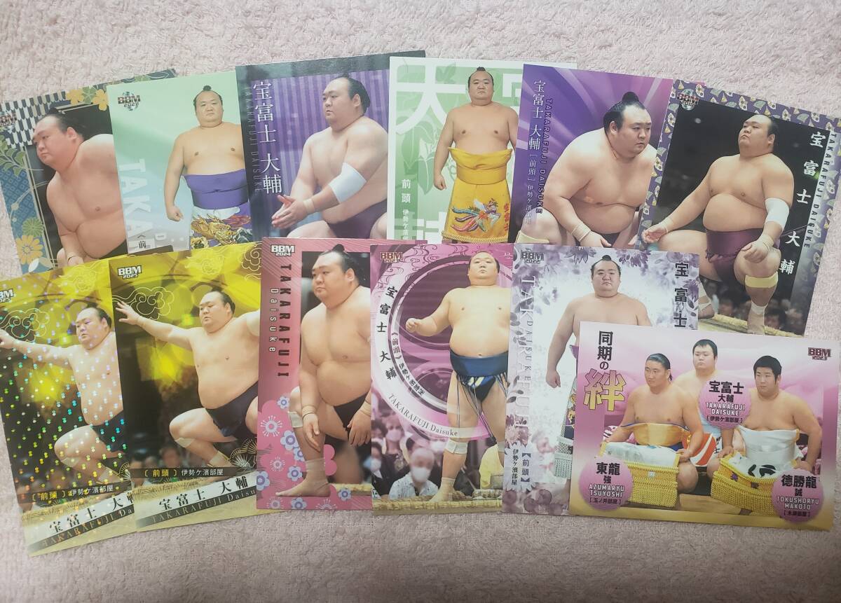ベースボールマガジン社(BBM社)より発売された「大相撲カード」に封入されておりました宝富士大輔関のレギュラーカード12枚セットになります。
