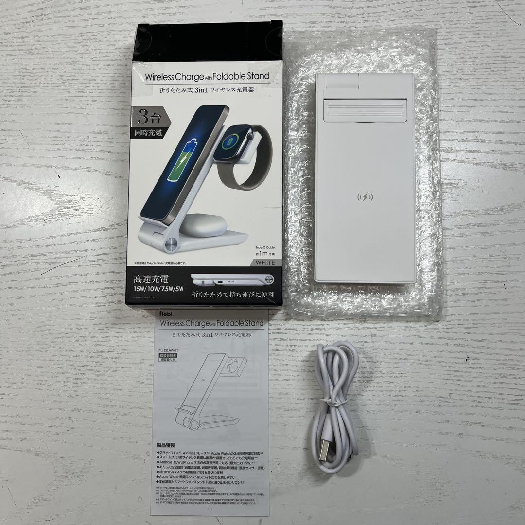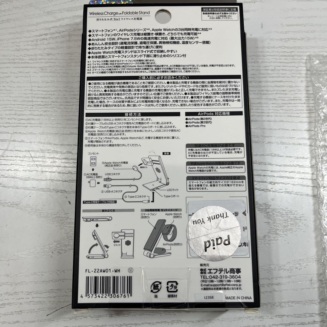 このワイヤレス充電器は、Apple WatchやAirPodsを含む3台のデバイスを同時に充電可能です。15Wの高速充電に対応しており、効率的にデバイスを充電できます。