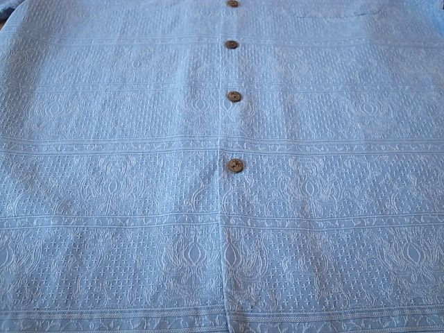 ◆ブランド 「Jamaica Jaxx」 アメリカ古着 ●サイズ表記 L 肩幅…51cm(肩先から肩先の間の長さ) 身幅…60cm(両脇を横直線に結んだ長さ) 着丈…76cm(後衿ぐり中央から後身頃裾) 袖丈…29cm(袖付けの肩先から袖先) ※平置き状態での素人採寸ですので、多少の誤差はご了承ください。 ●素材…100%SILK ●色…水色 総柄 ●ポケット…パッチポケット ●製造国表記…CHINA ●状態…使用感は少ない美品です。 スペア釦付属 ★送料 全国一律 700円 佐川急便 (北海道900円 沖縄その他離島1700円) ※複数ご購入の場合、同梱発送可能です。 |