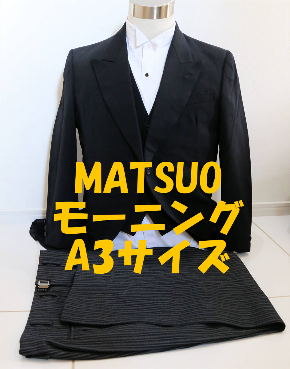 A3サイズMATSUO結婚式や式典燕尾服メンズフォーマルモーニングコート3点セット正装新郎衣装ウエディングウール生地た3