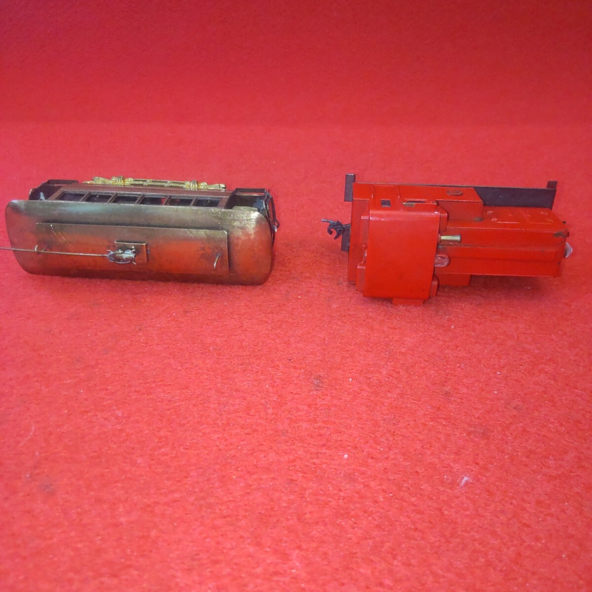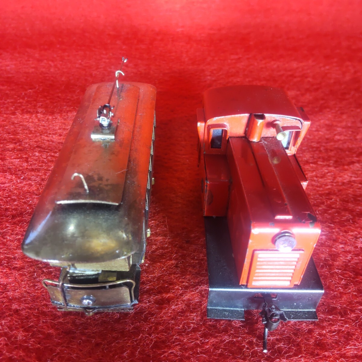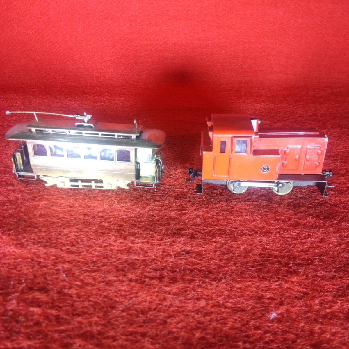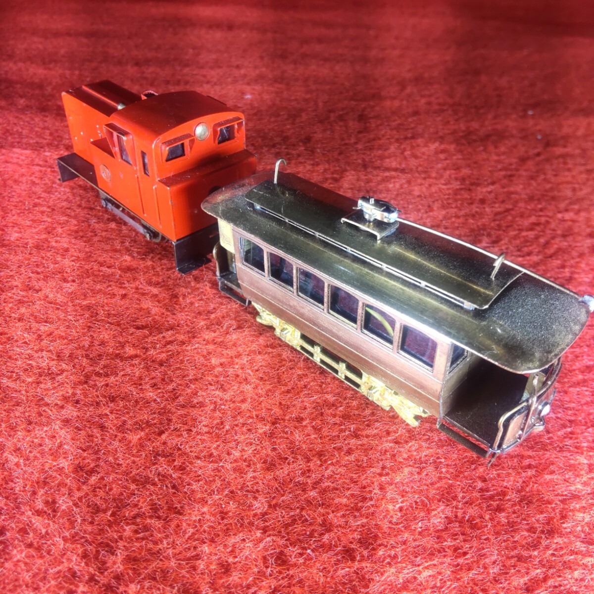 真鍮製、R610の楕円型線路で動作確認済み、片方向のみ室内灯点灯確認済み、路面電車は片方の運転室におもりを装着済み、付属品は無しで本体のみに成ります。