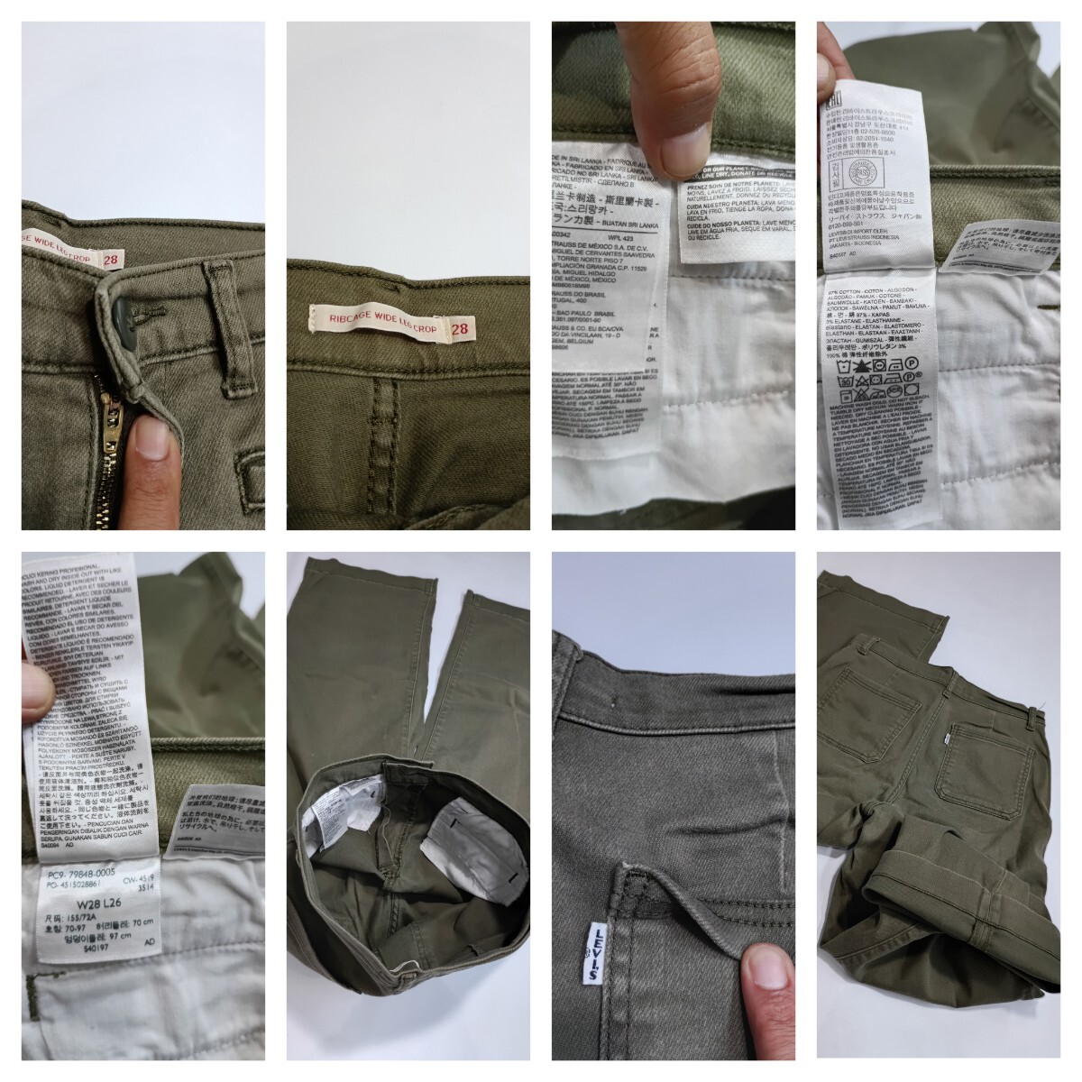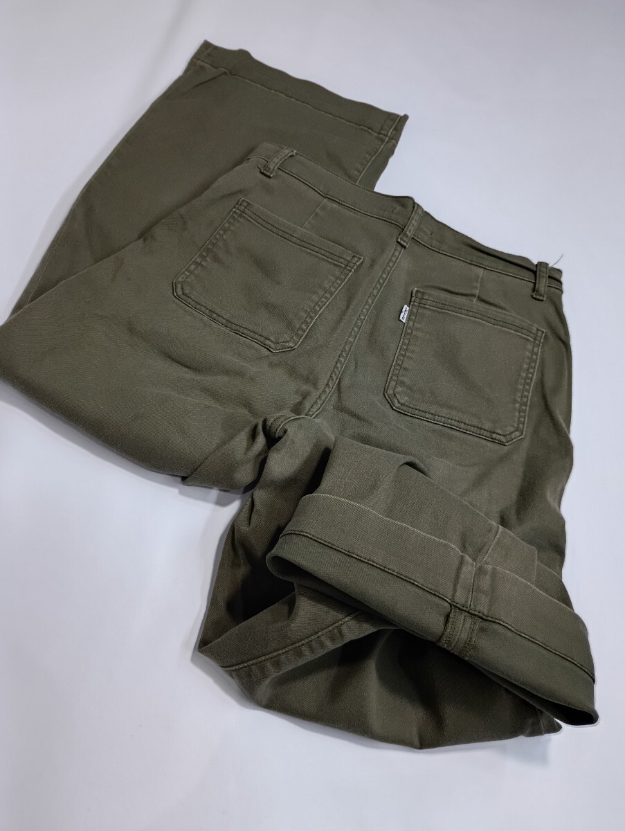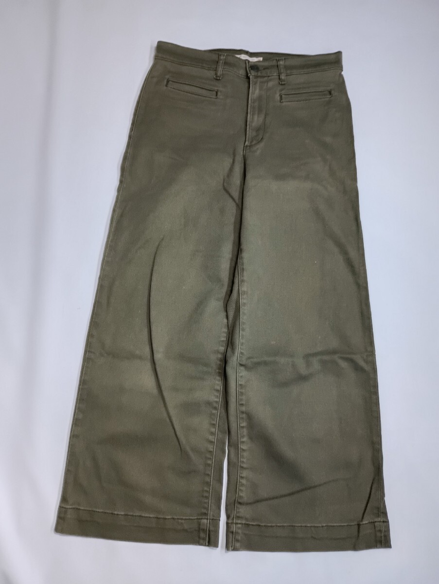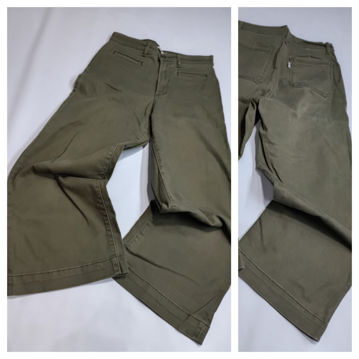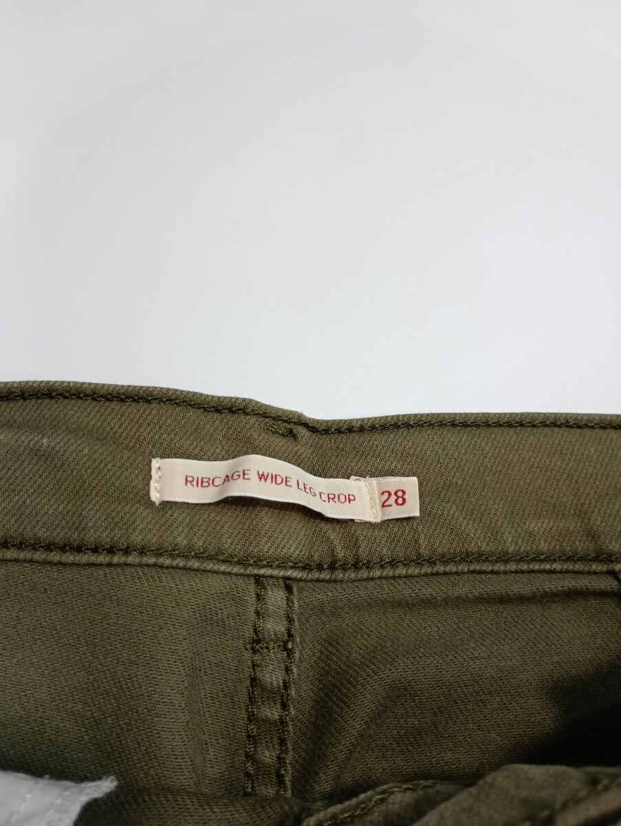 RIBCAGE WIDE LEG CROP カーキ カラーデニム ワイドパンツ 28 約76cm 白タブ
