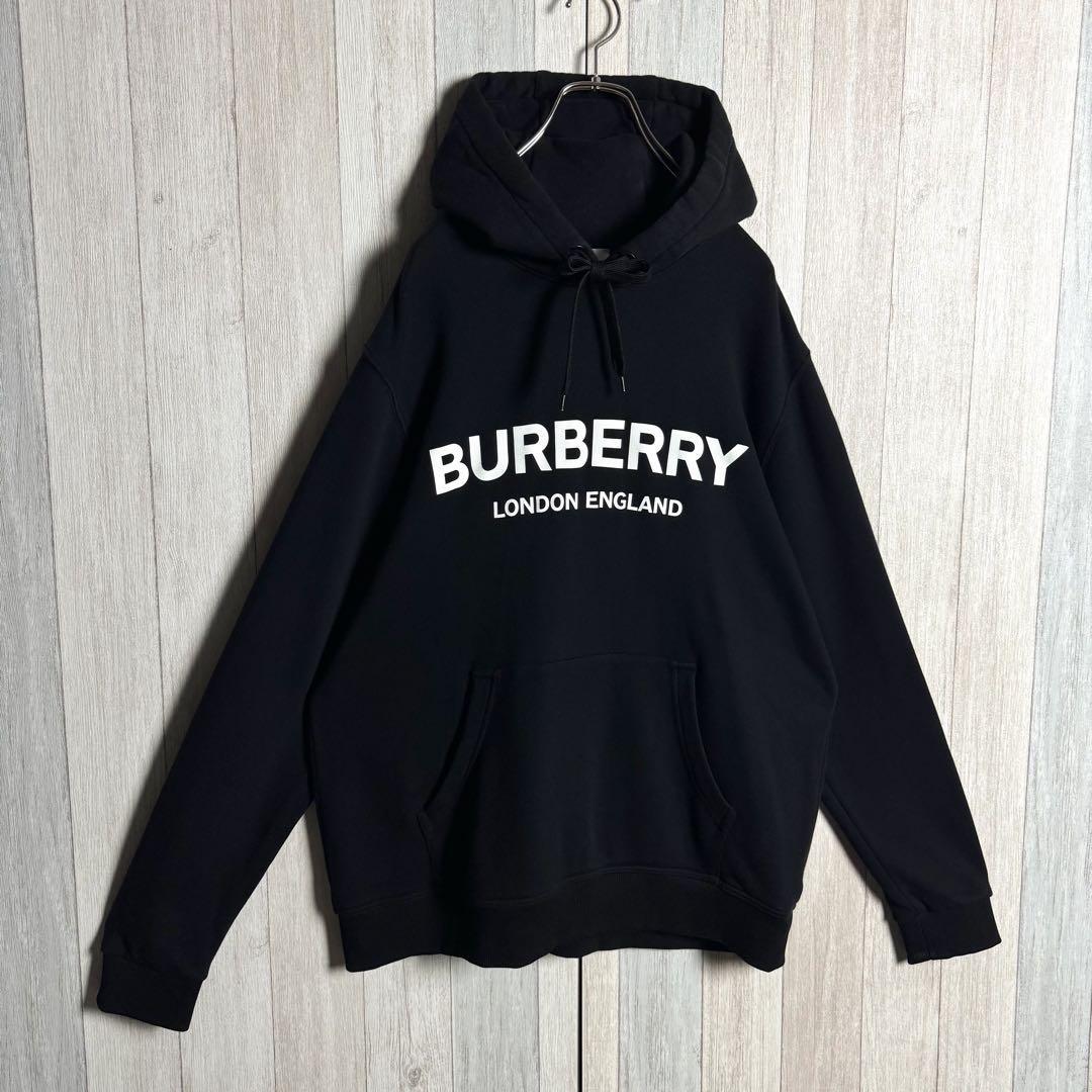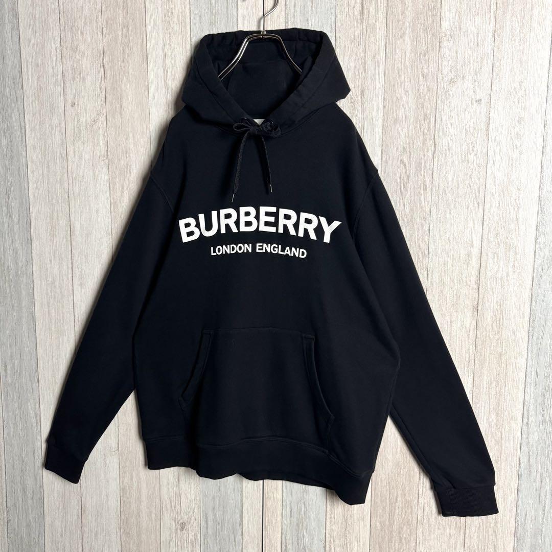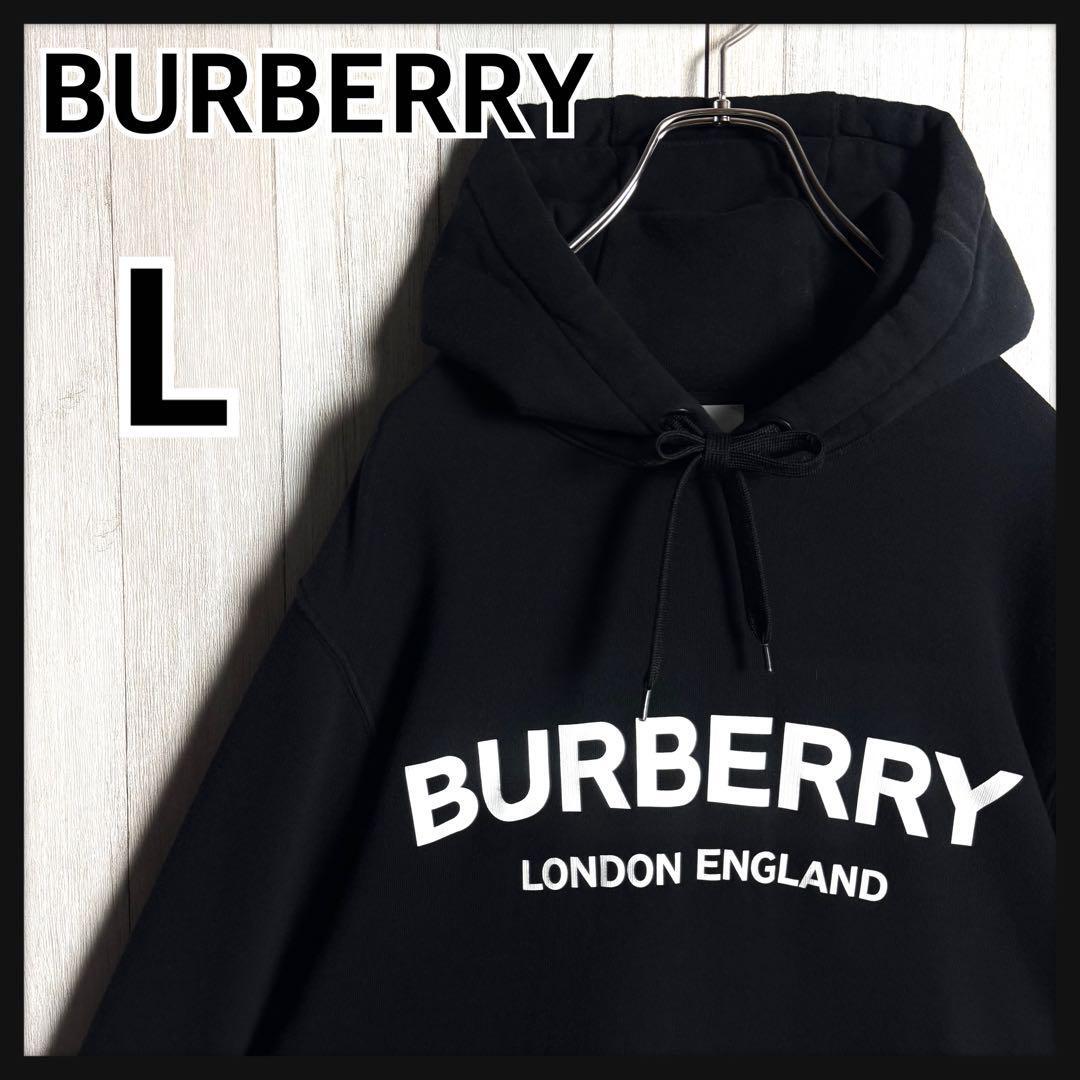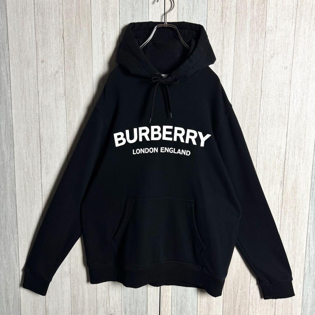 【定番人気・Lサイズ・美品】現行 BURBERRY バーバリー ビッグセンターロゴ フーディー スウェット パーカー ブラック 黒 オーバーサイズ