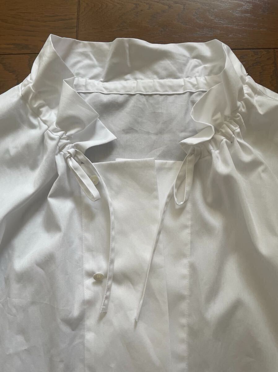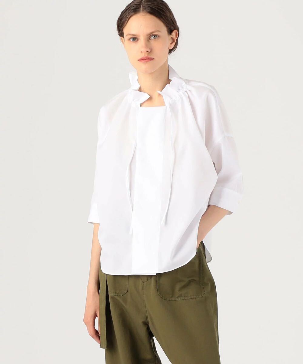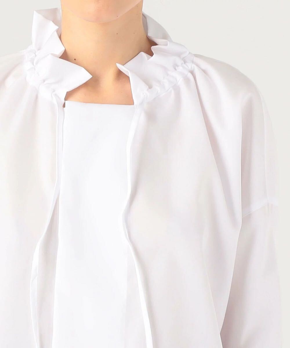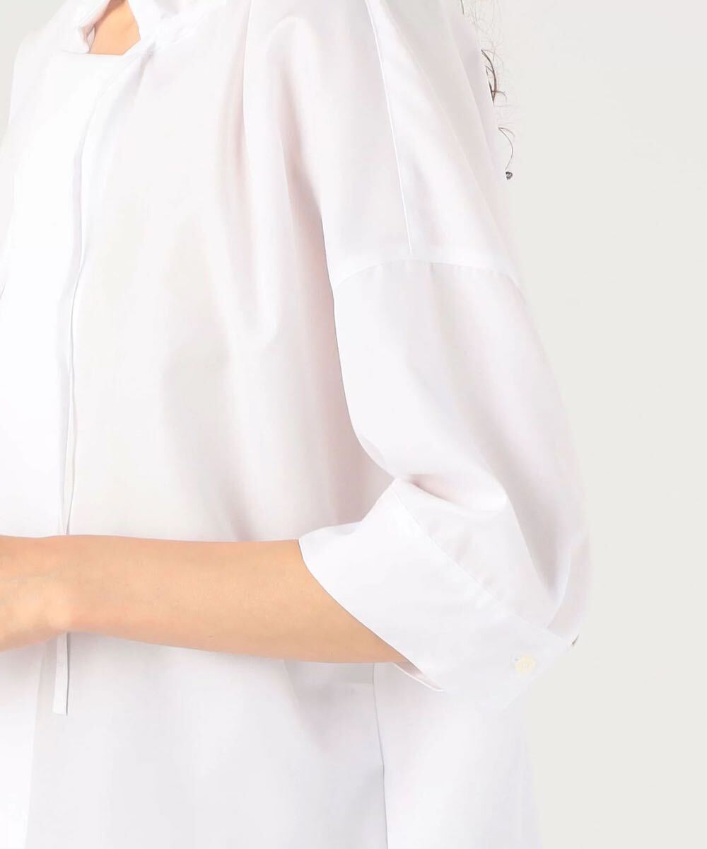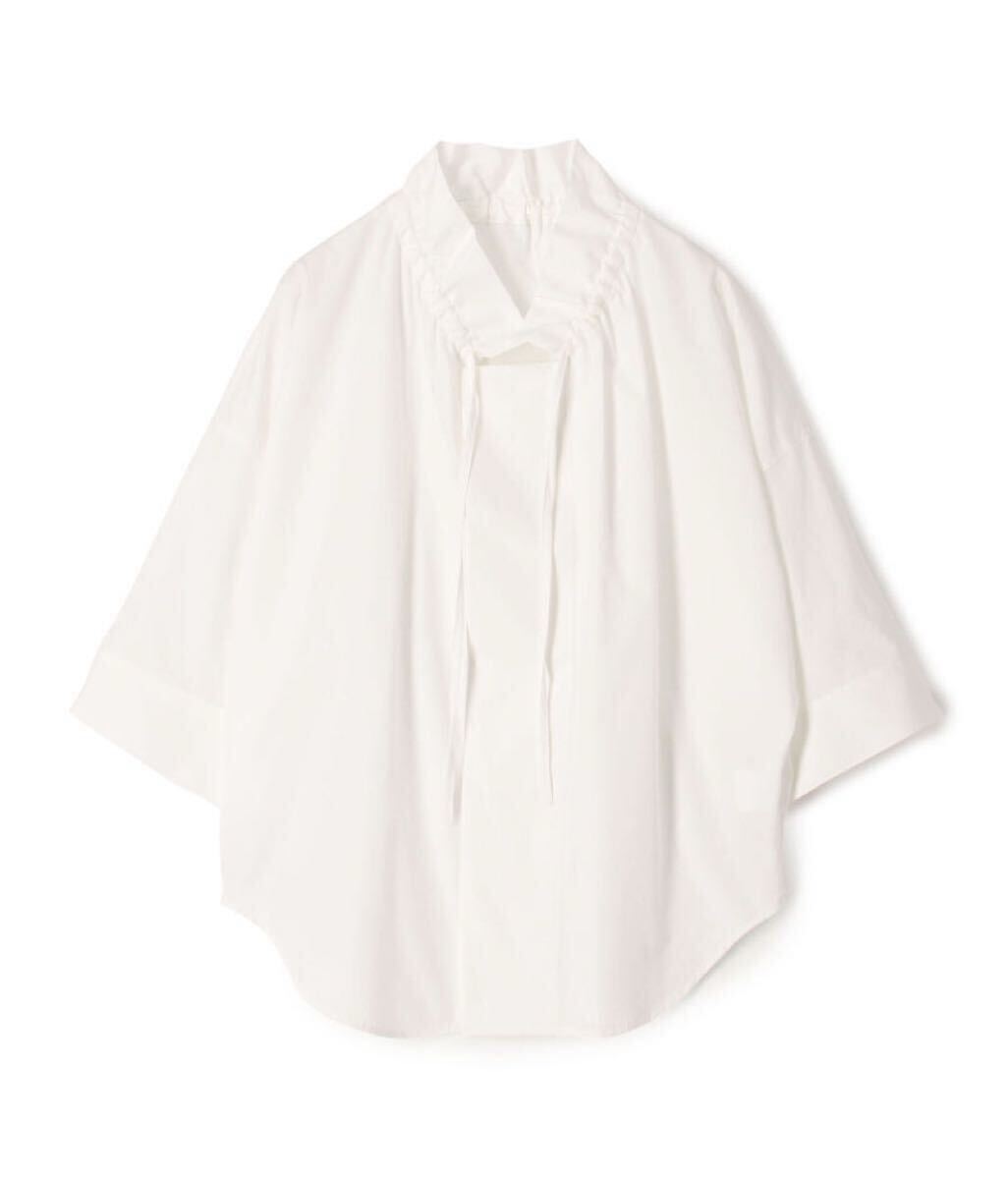ボウタイの絞り方で襟元に変化をつけられ、きゅっと絞ればスタンドカラーとしても着用いただけます。