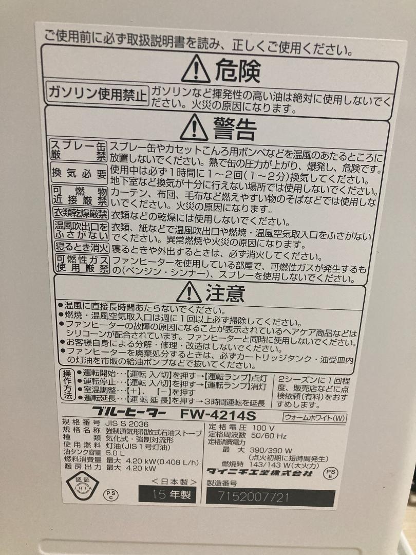 本体、タンク内の灯油は全て抜いて発送しますが抜ききれていない事もありますので、オイル漏れ防止の為フィルターとタンクの間にティッシュを挟んでいますので給油の際にお取り下さい。