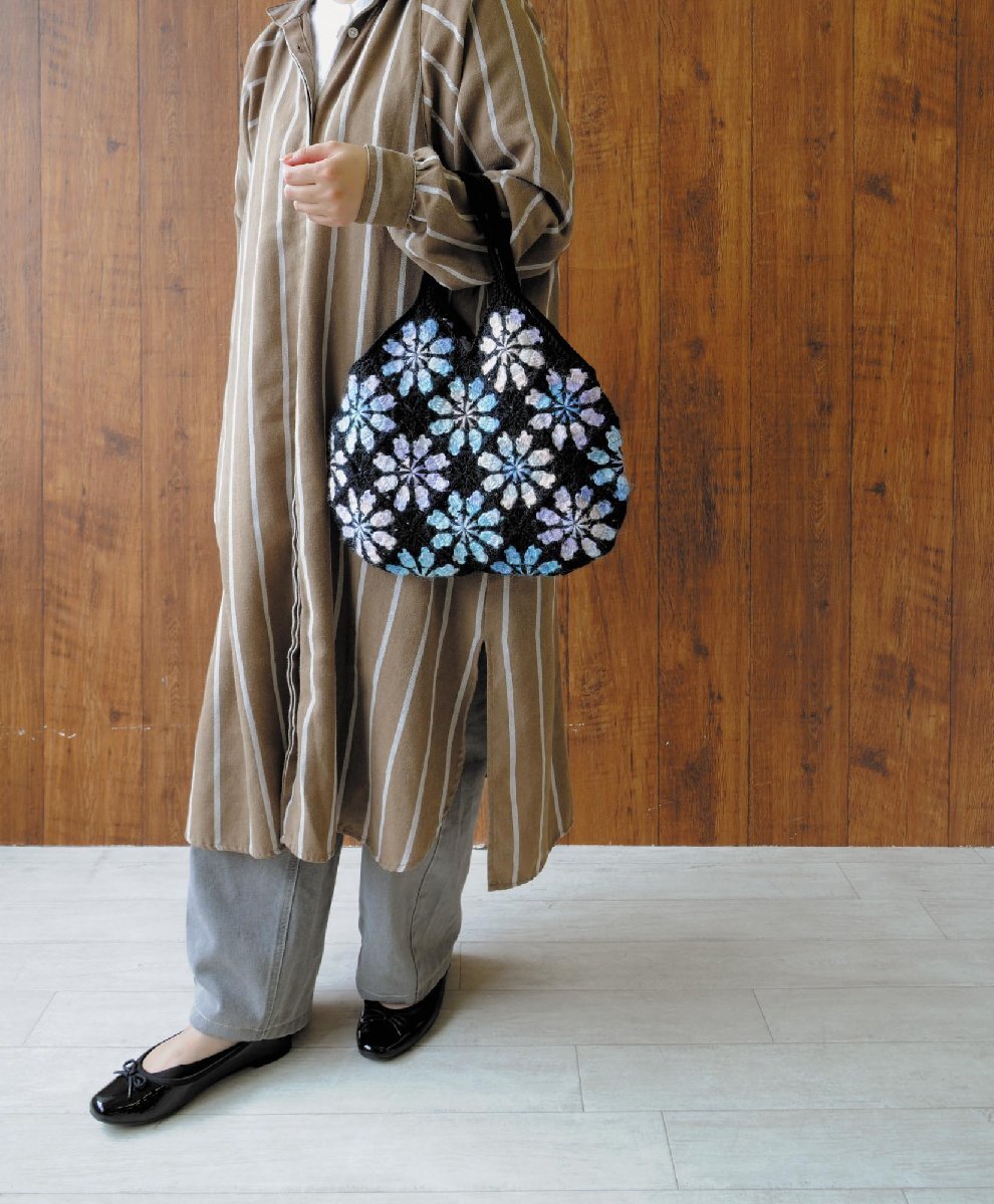 【在庫限りです】送料無料!ハマナカ・(アメリー使用)(サイズステンドグラス風モチーフつなぎのバッグディーナ約COL.あみものキットA