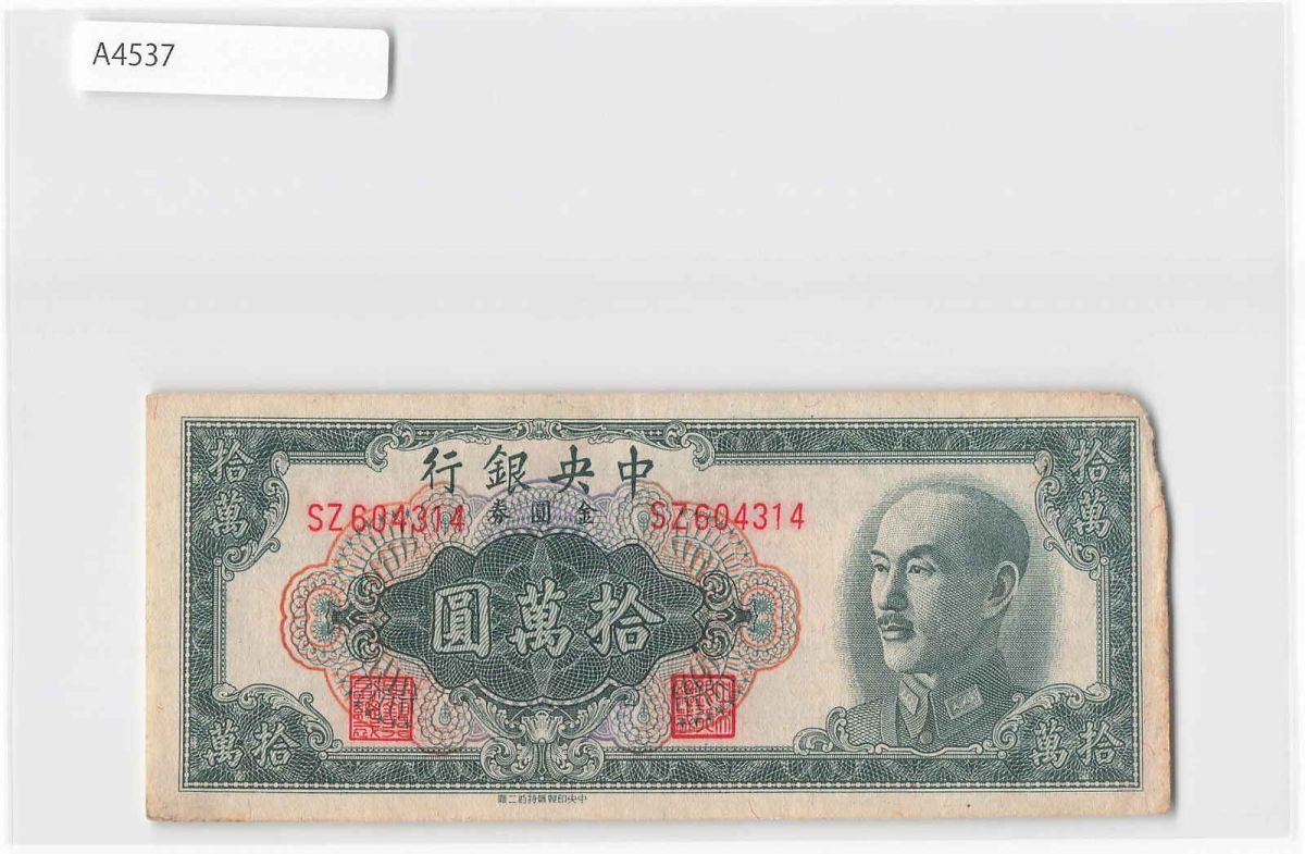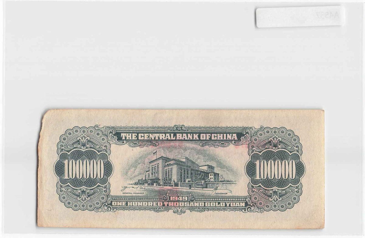 *[令]中国紙幣 中央銀行 100000圓(1949)[A4537]7n2