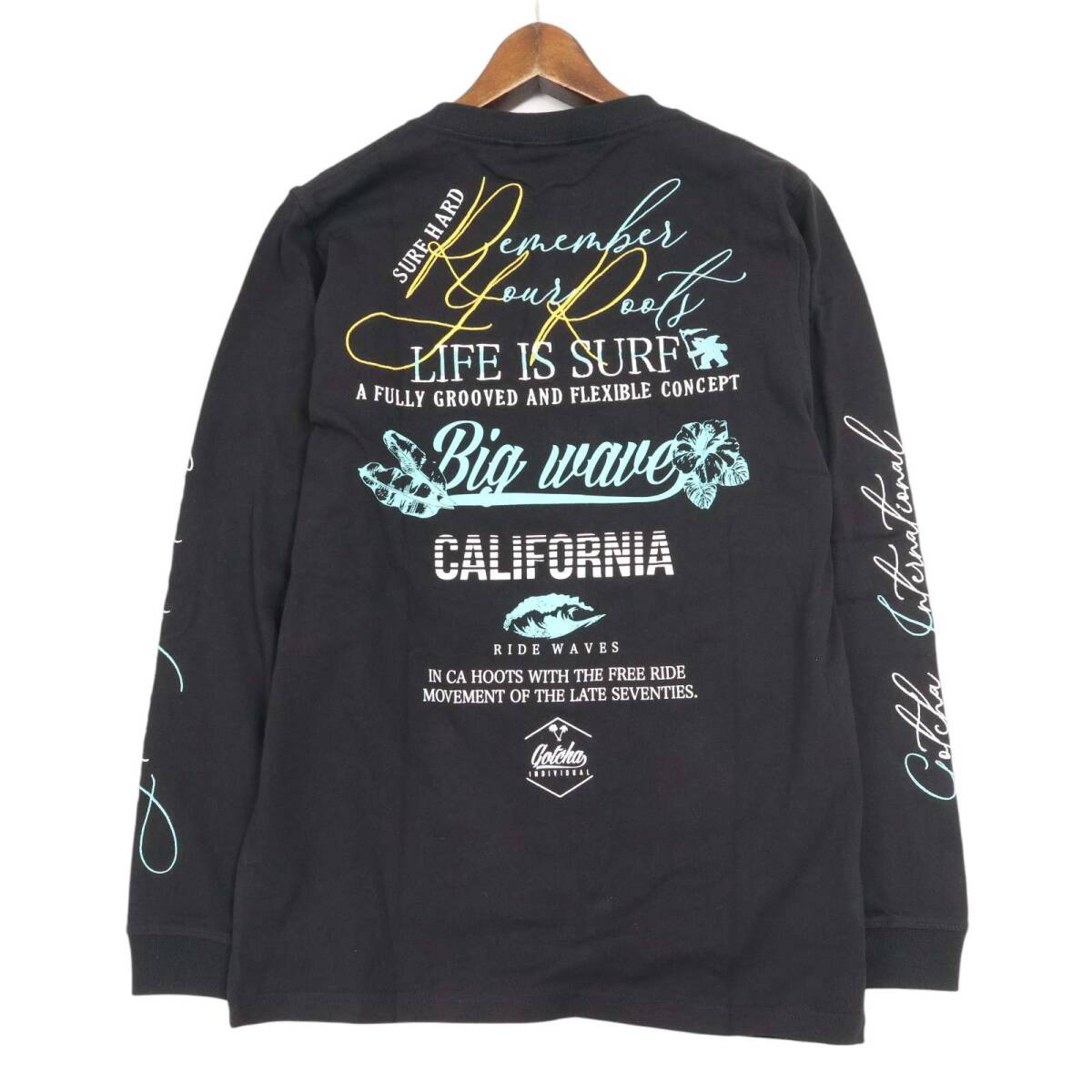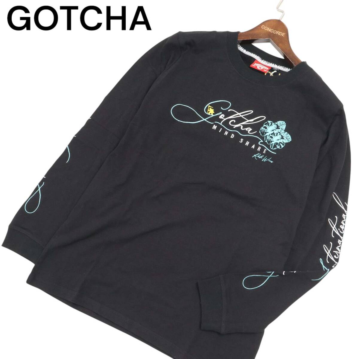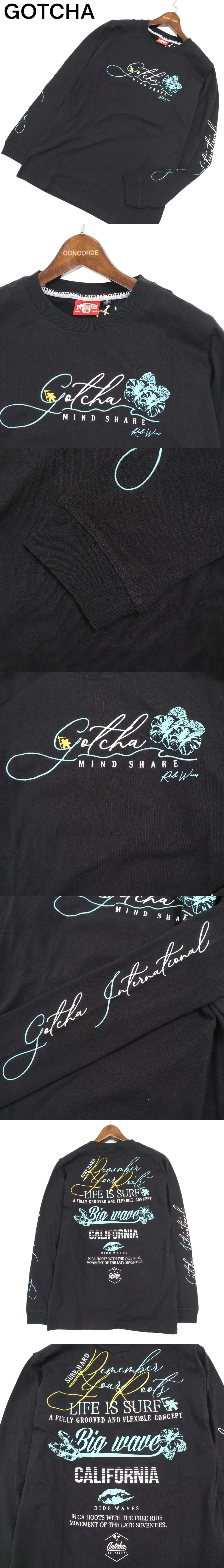 【新品 23SS】 GOTCHA ガッチャ 通年 ロゴ刺繍★ プリント 長袖 カットソー ロンTシャツ Sz.M メンズ 黒 サーフ 未使用
