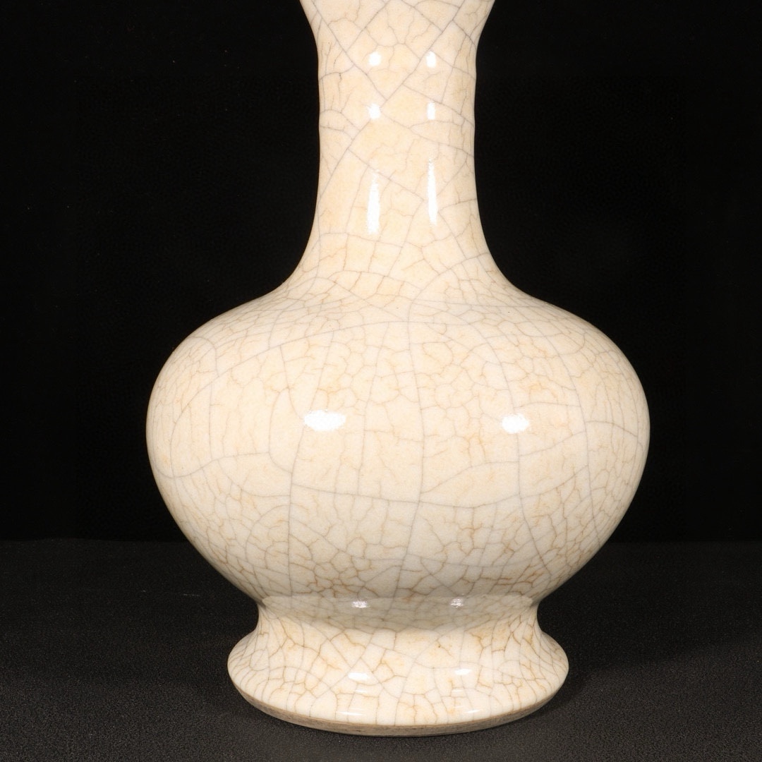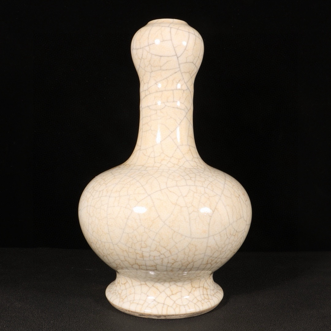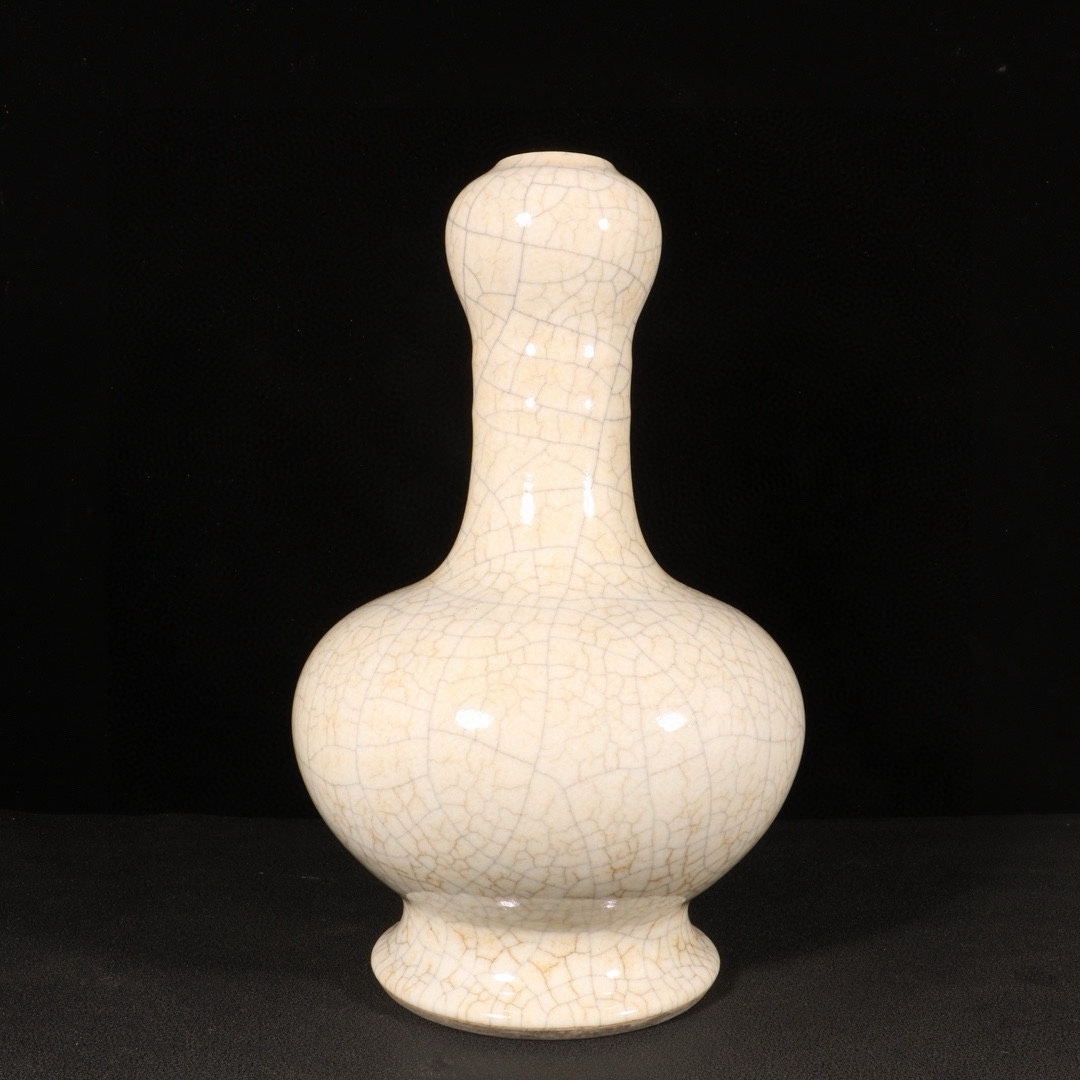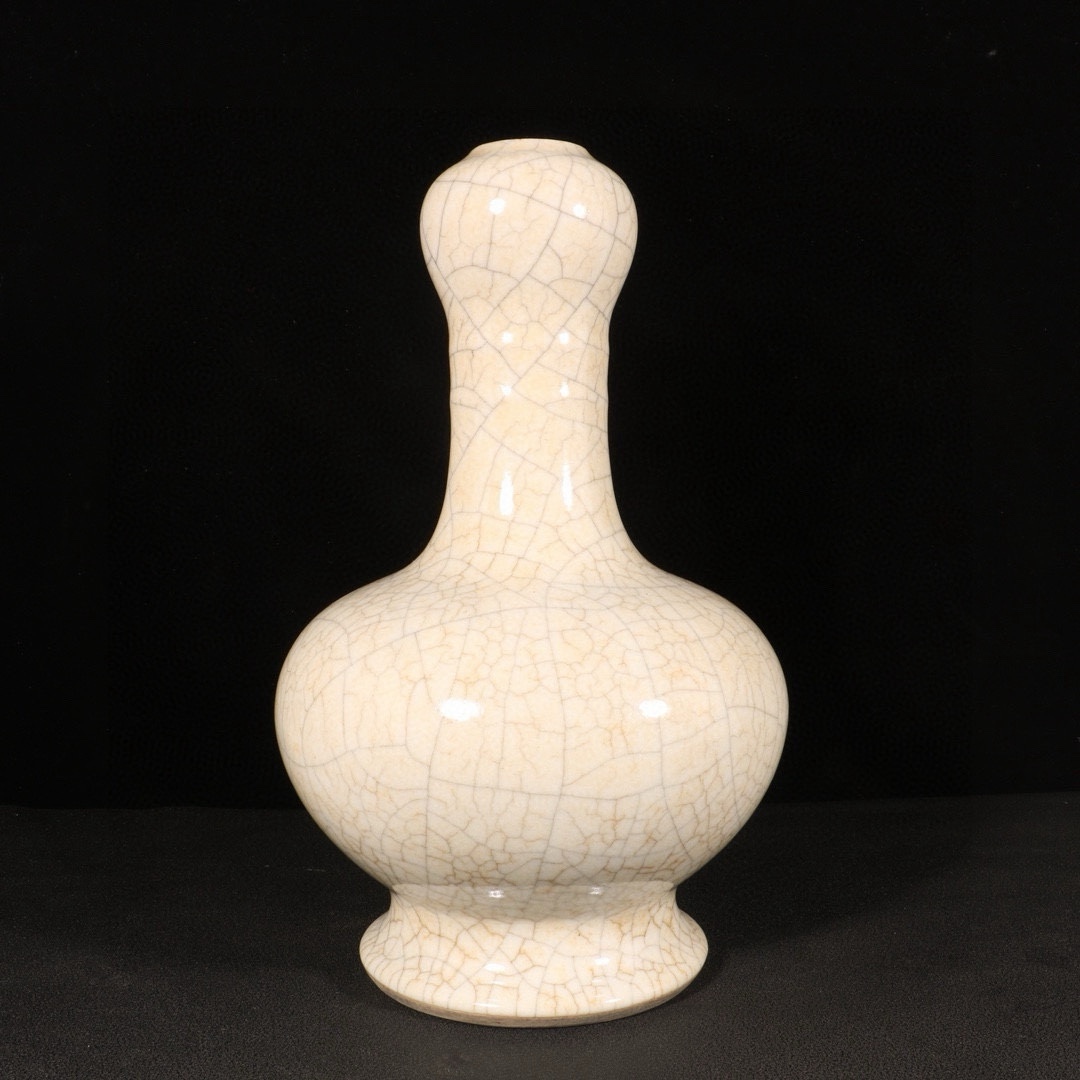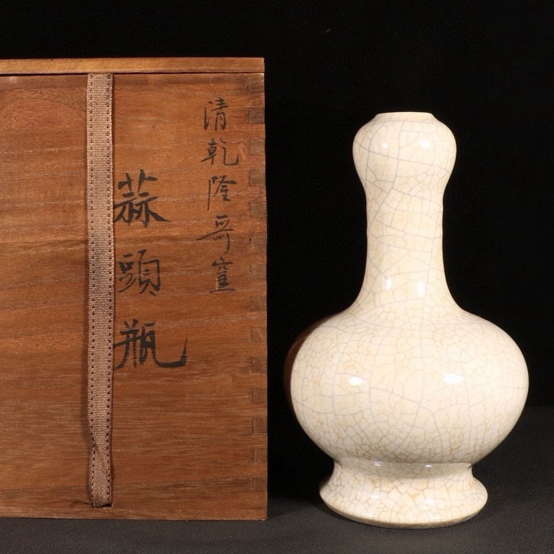 清時代 乾隆年製 コ窯 米黄釉 ニンニク瓶 共箱付き 高さ24 cm 直径14 cm 中国骨董 珍品旧蔵 古賞物 時代物 808