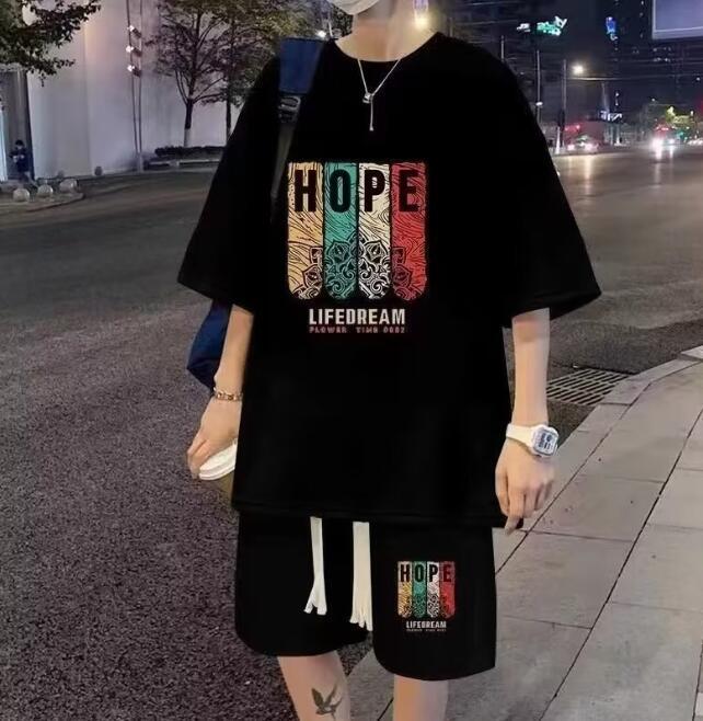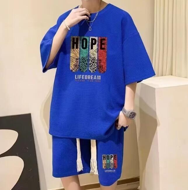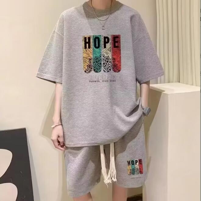 新入荷 上下セット メンズ セットアップ tシャツ+短パン 2点セット 大きいサイズ 英文字 半袖 夏 ゆったり カジュアル (4色M-5XL)