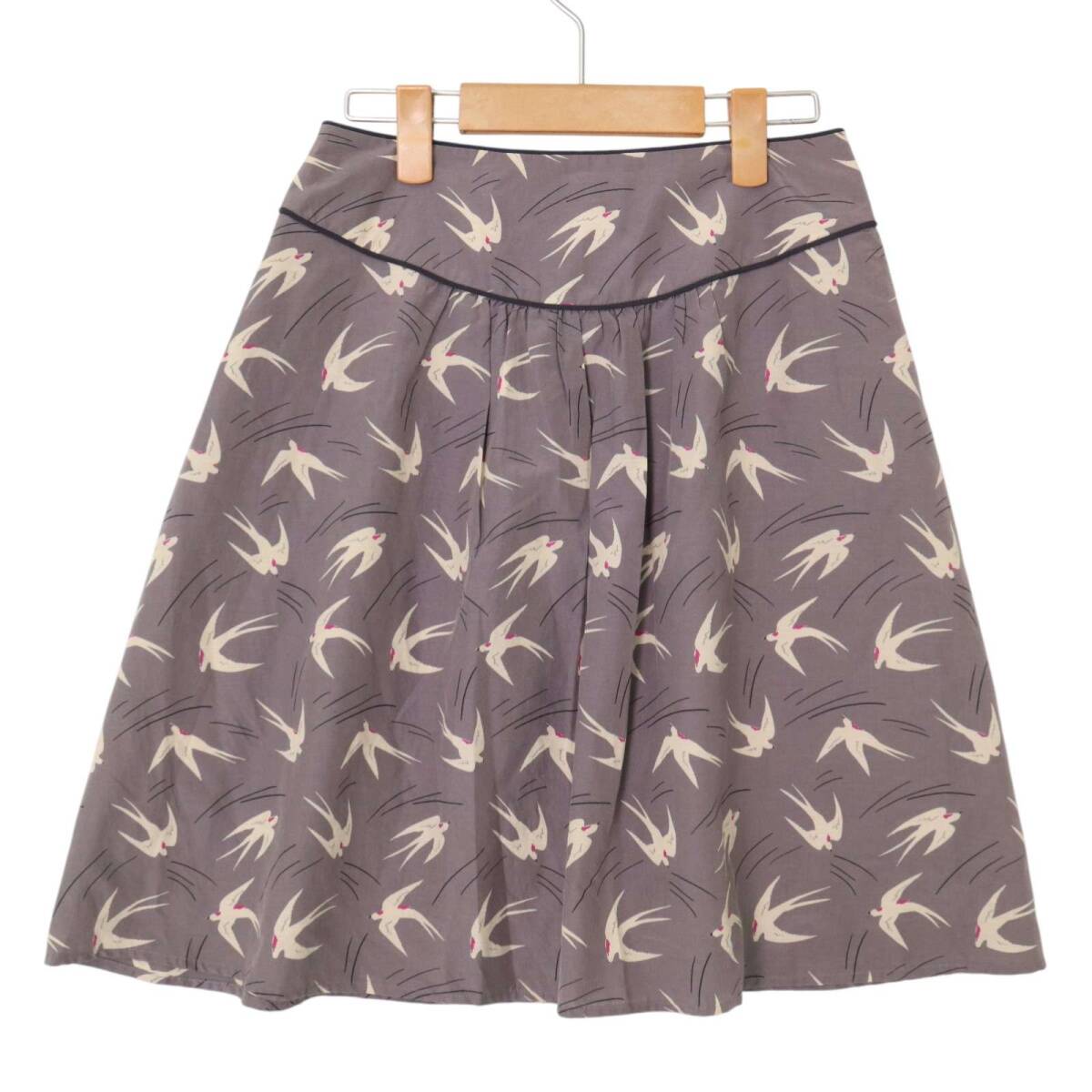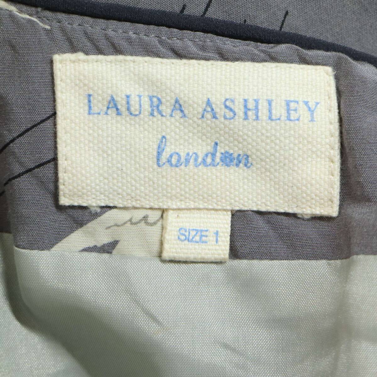 Laura Ashley ローラアシュレイ ツバメ柄★ シルク混 フレア Aライン ミディ丈 スカート Sz.1 レディース