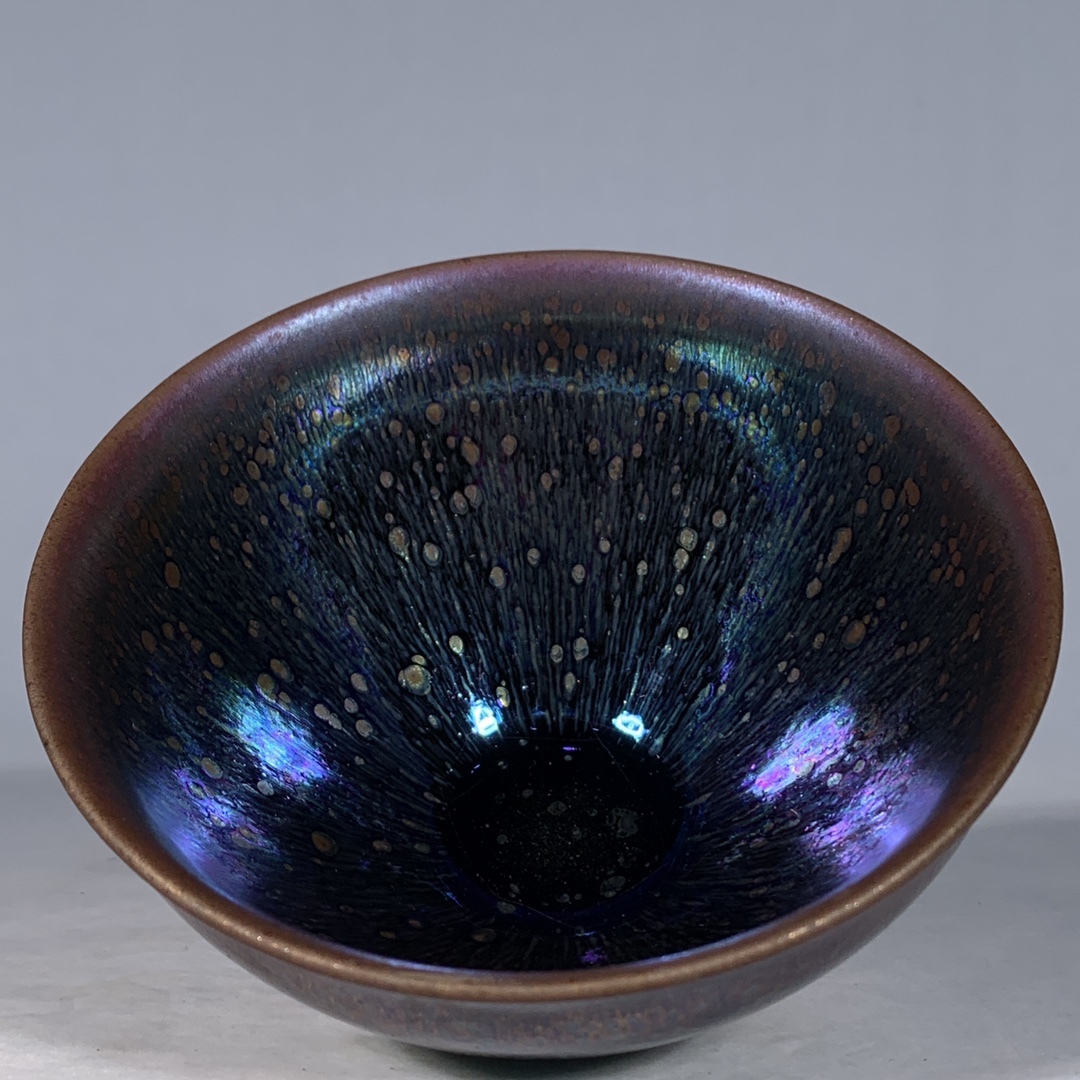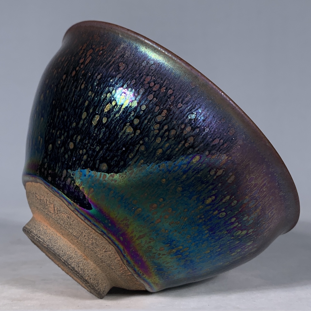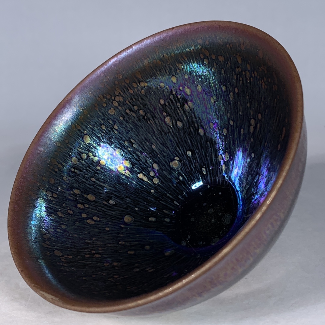 宋 古陶磁器 建窯 曜変 七彩光 油滴盞 盃 建盞 茶盞 進錢 極細工 時代物 東洋彫刻 旧家蔵出し 唐物 中国古玩 古美術品