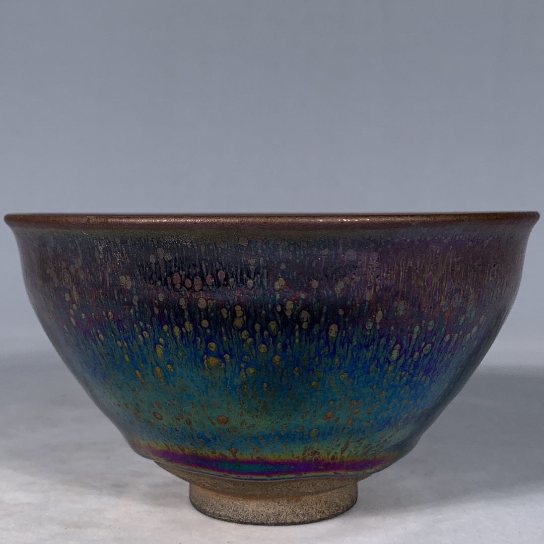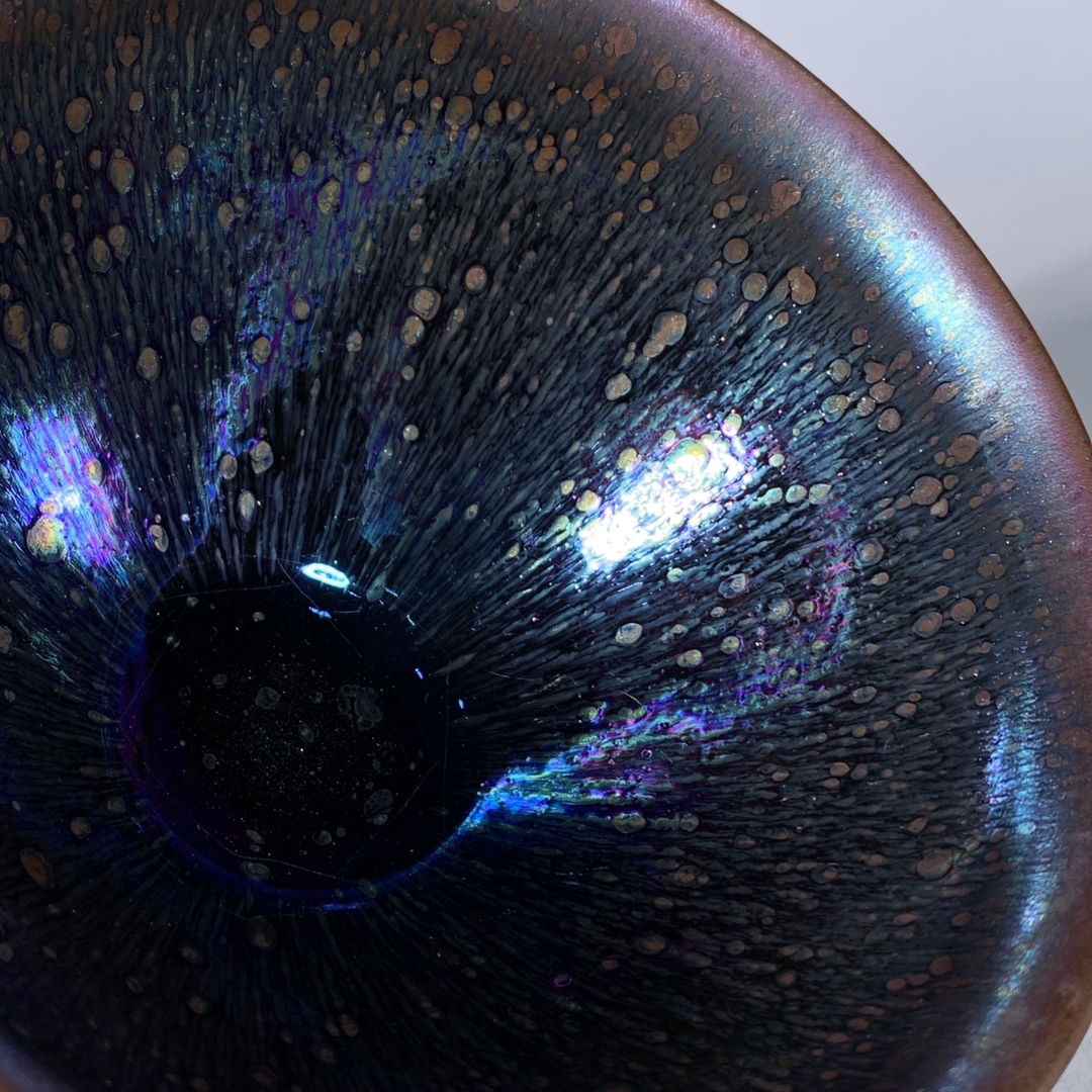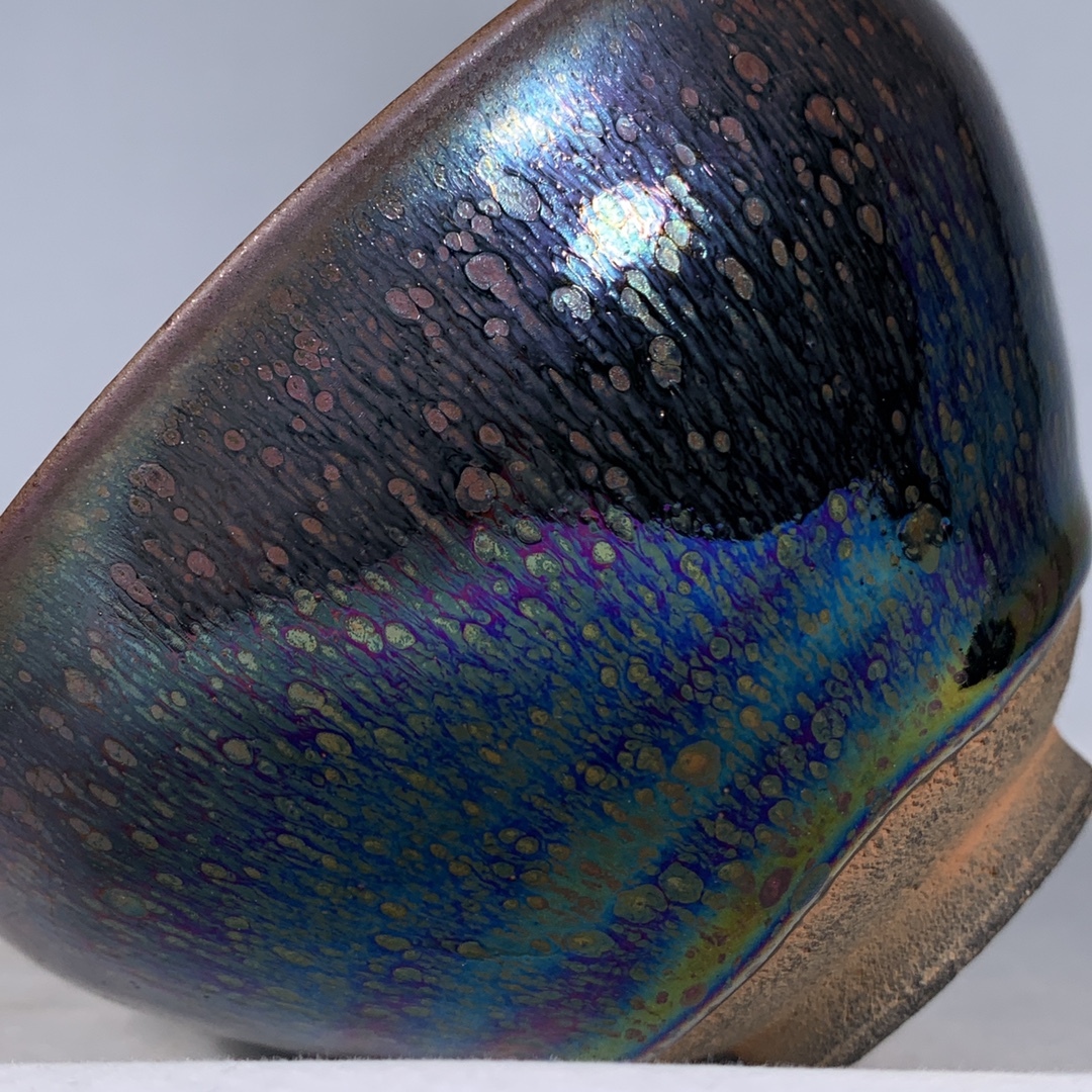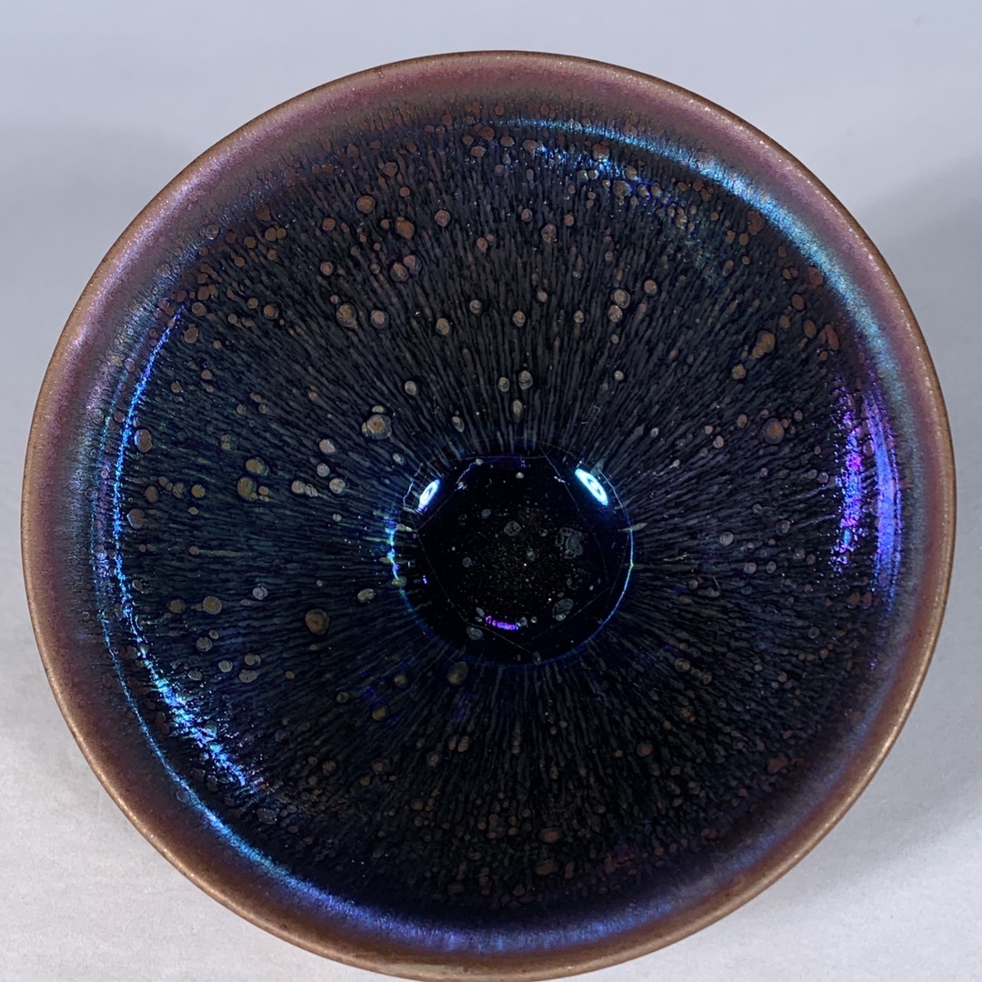 宋 古陶磁器 建窯 曜変 七彩光 油滴盞 盃 建盞 茶盞 進錢 極細工 時代物 東洋彫刻 旧家蔵出し 唐物 中国古玩 古美術品
