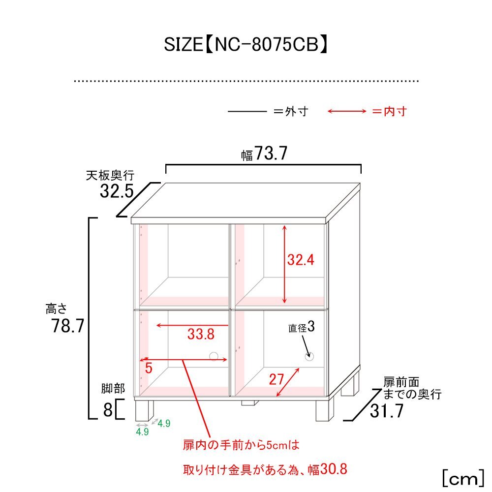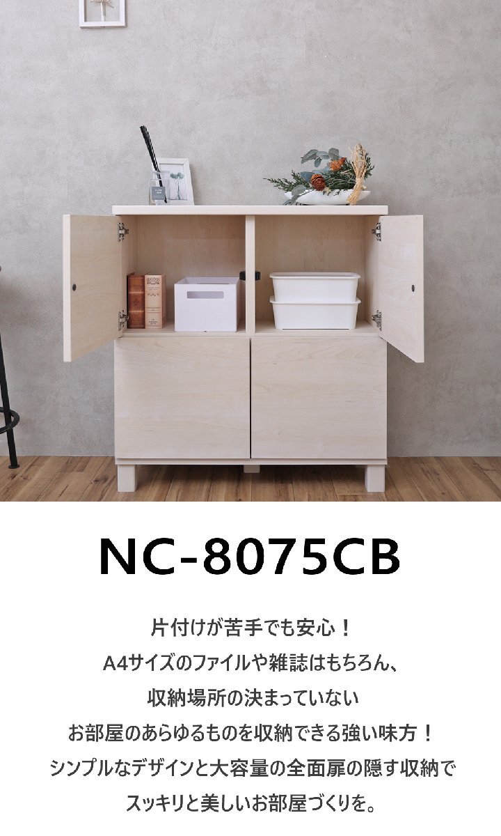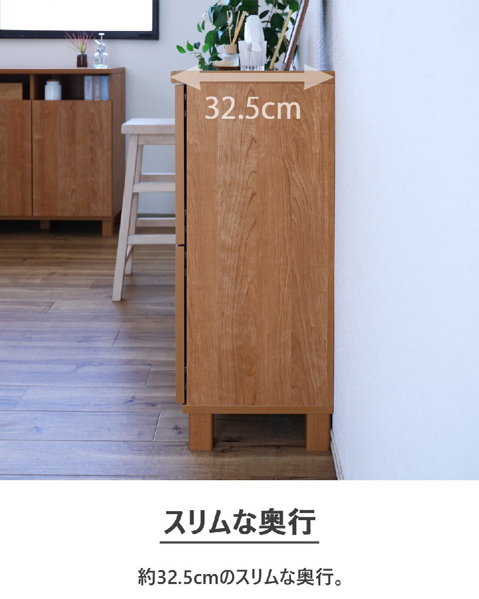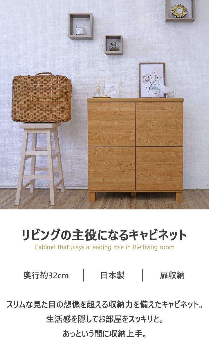 キャビネット サイドボード 木製 2列 薄型 木目 奥行32cm 高さ78.7cm 扉付き 扉 おしゃれ 収納 棚 日本製 NC-8075CB-LB ライトブラウン |