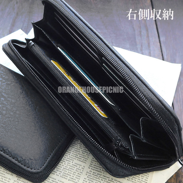 送料無料 ウォレットチェーン付き フェイクレザー イントレチャート 財布 メンズ 長財布 ロングウォレット ラウンドファスナー 編み込み☆