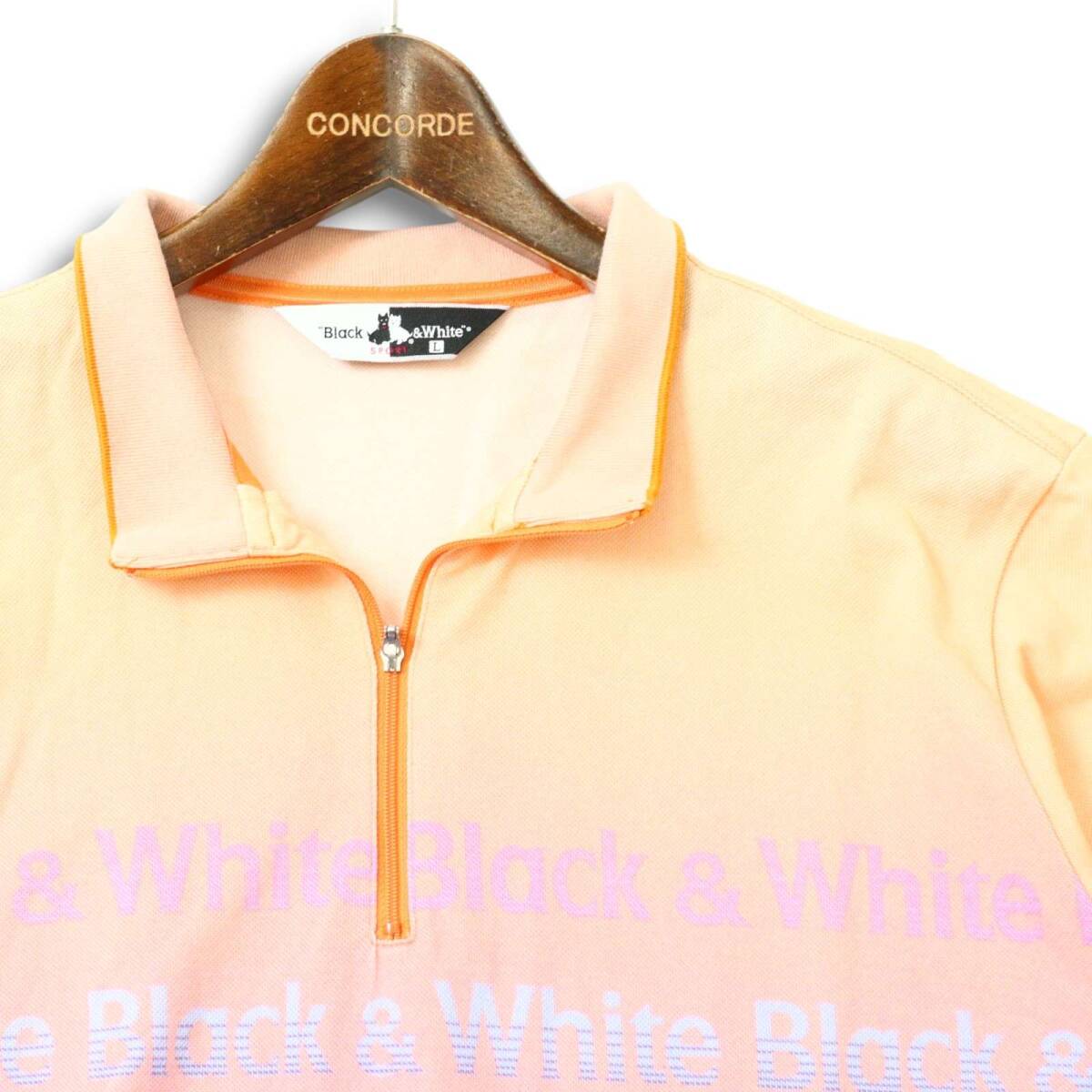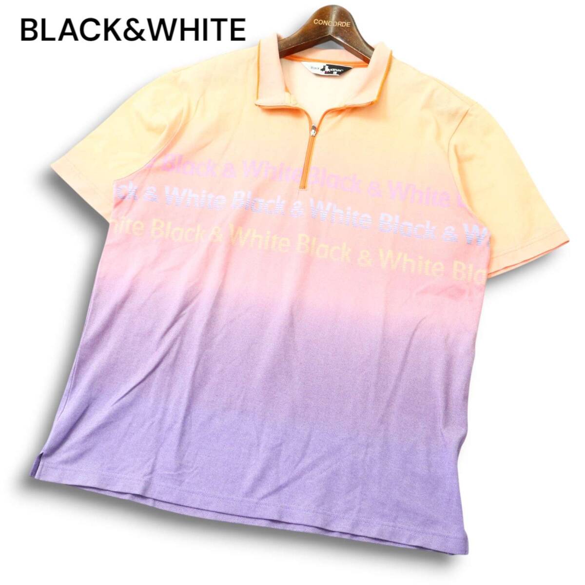 BLACK&WHITE ブラック&ホワイト ゴルフ 春夏 鹿の子★ グラデーション ロゴ 半袖 ハーフジップ ポロシャツ Sz.L メンズ