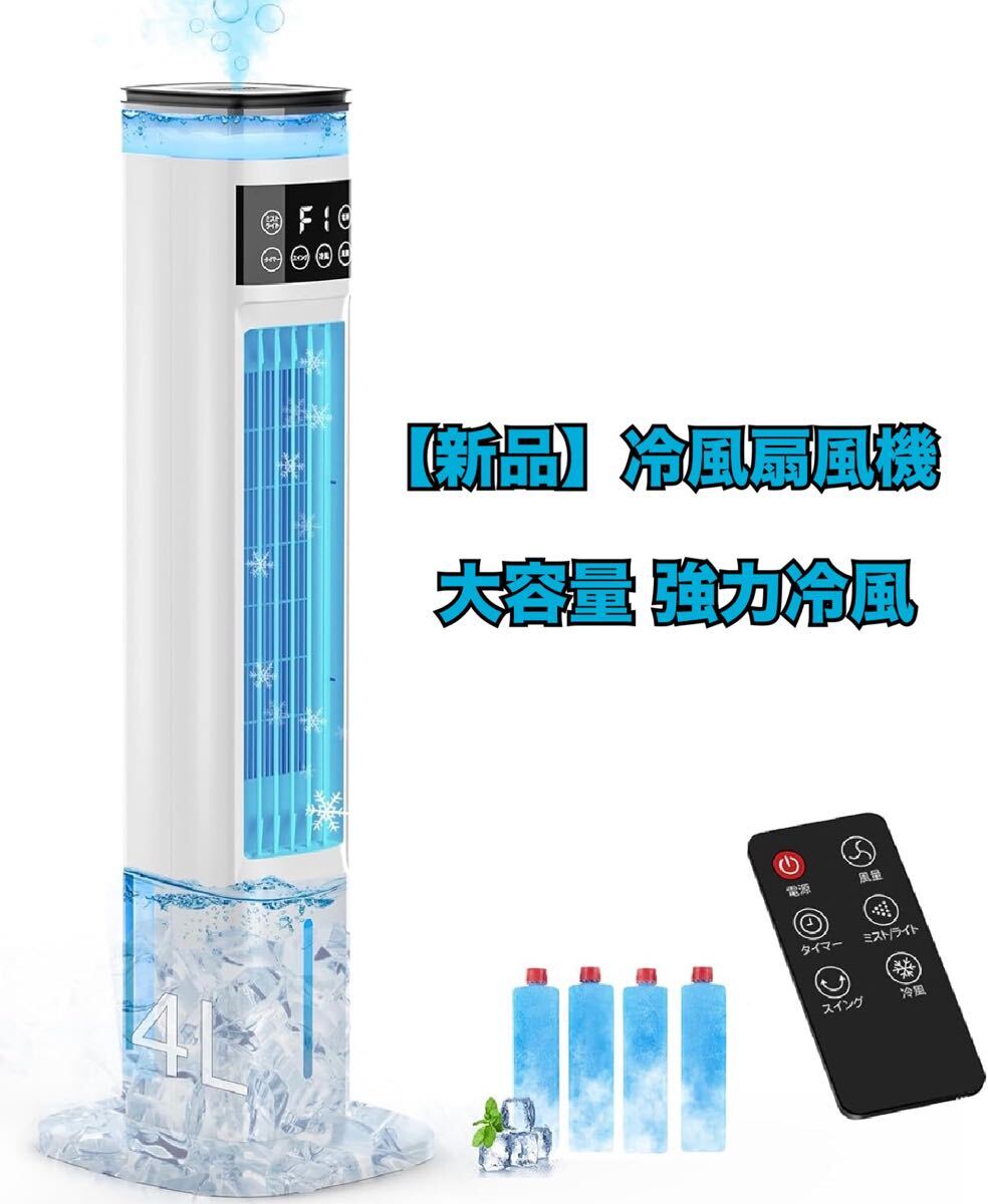 冷風扇 冷風扇風機 【スリムタワー型 ダブル水タンク】加湿機能 雰囲気タイト 強力冷風 スポットクーラー 冷房 冷風機 4L大容量 3段階風量切替 左右首振り 24H切タイマー 氷入れ リモコン遠隔操作 空気清浄 移動便利 熱中症対策 65w省エネ 置き型クーラー 強力 人気 業務&家庭用 台所 キチン オフィス PSE認証済 日本語説明書(Ice crystal box付き)
