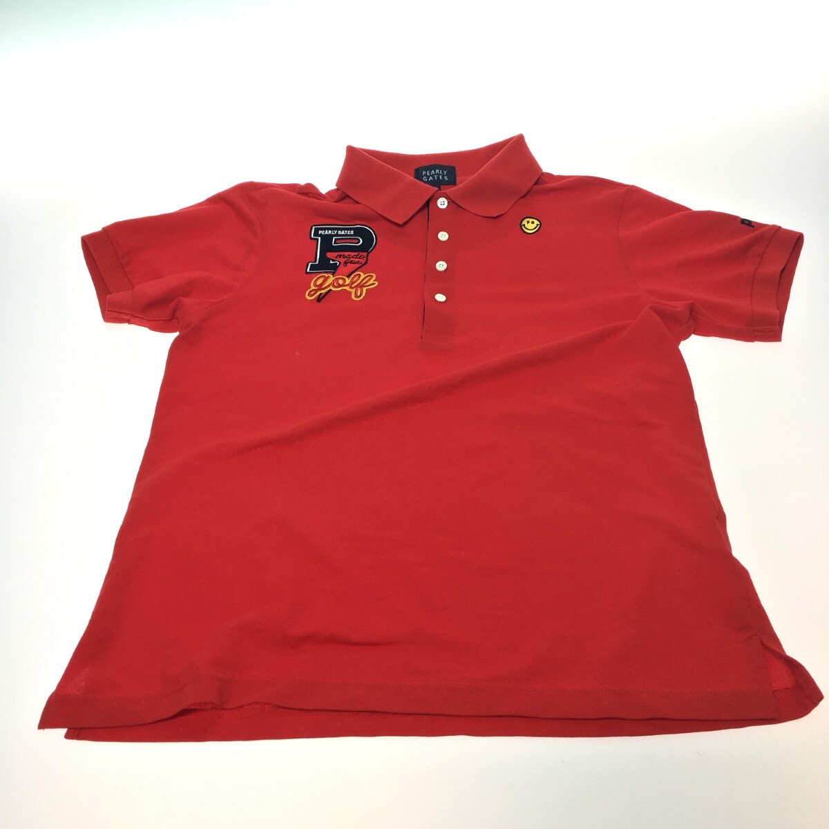 ◎◎ PEARLY GATES パーリーゲイツ 半袖ポロシャツ  レッド ニコちゃんワッペン やや傷や汚れあり