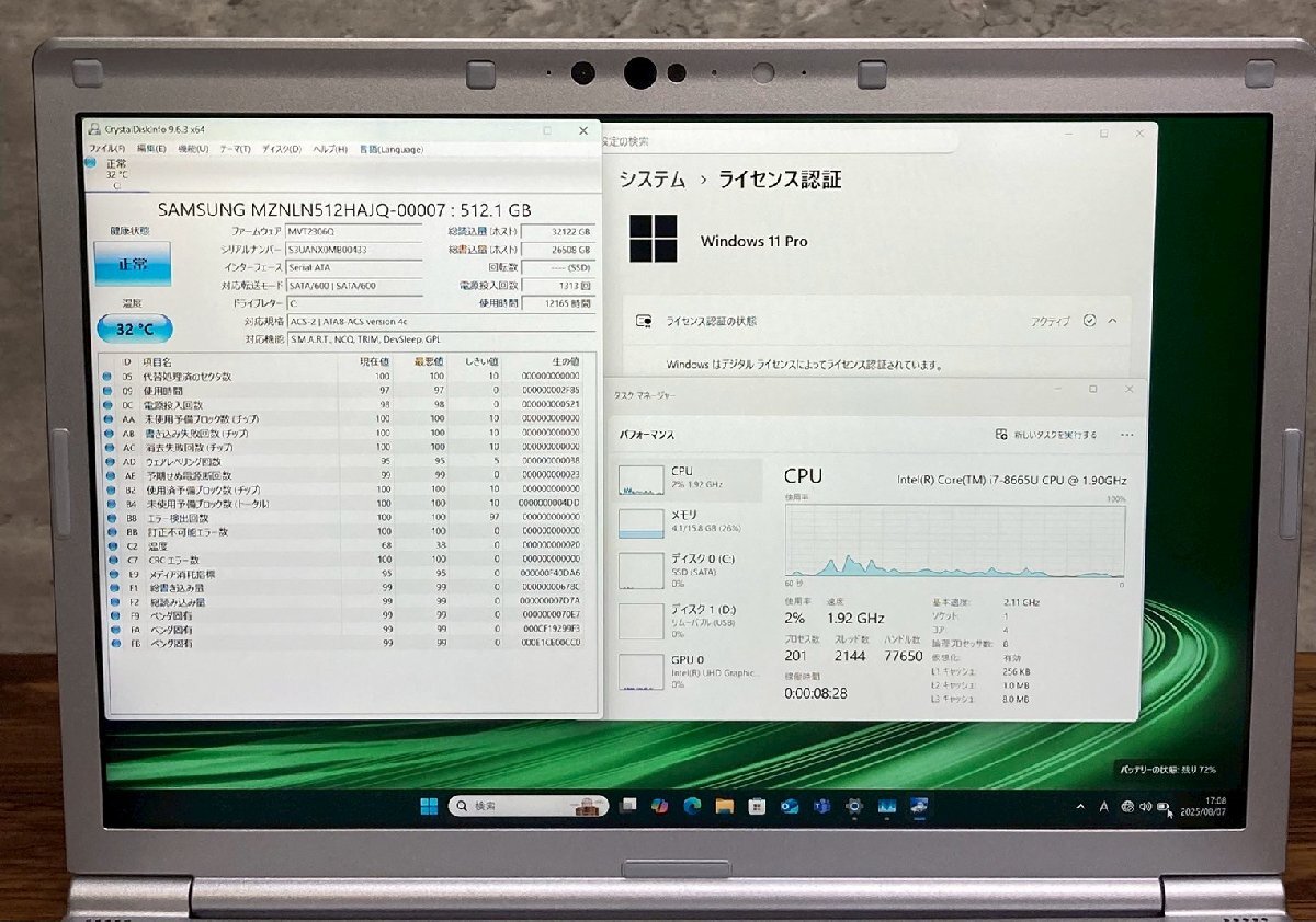 | ライセンス確認 | 〇 | CrystalDiskinfo | 〇 |