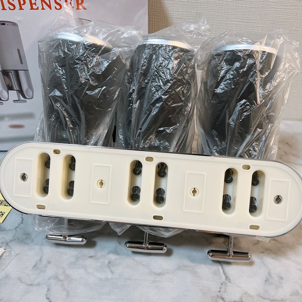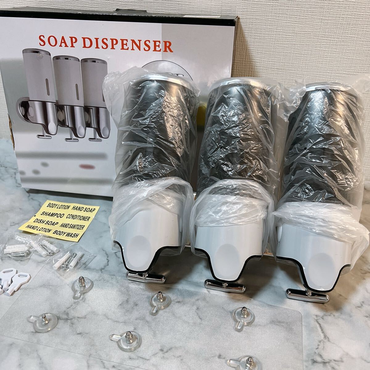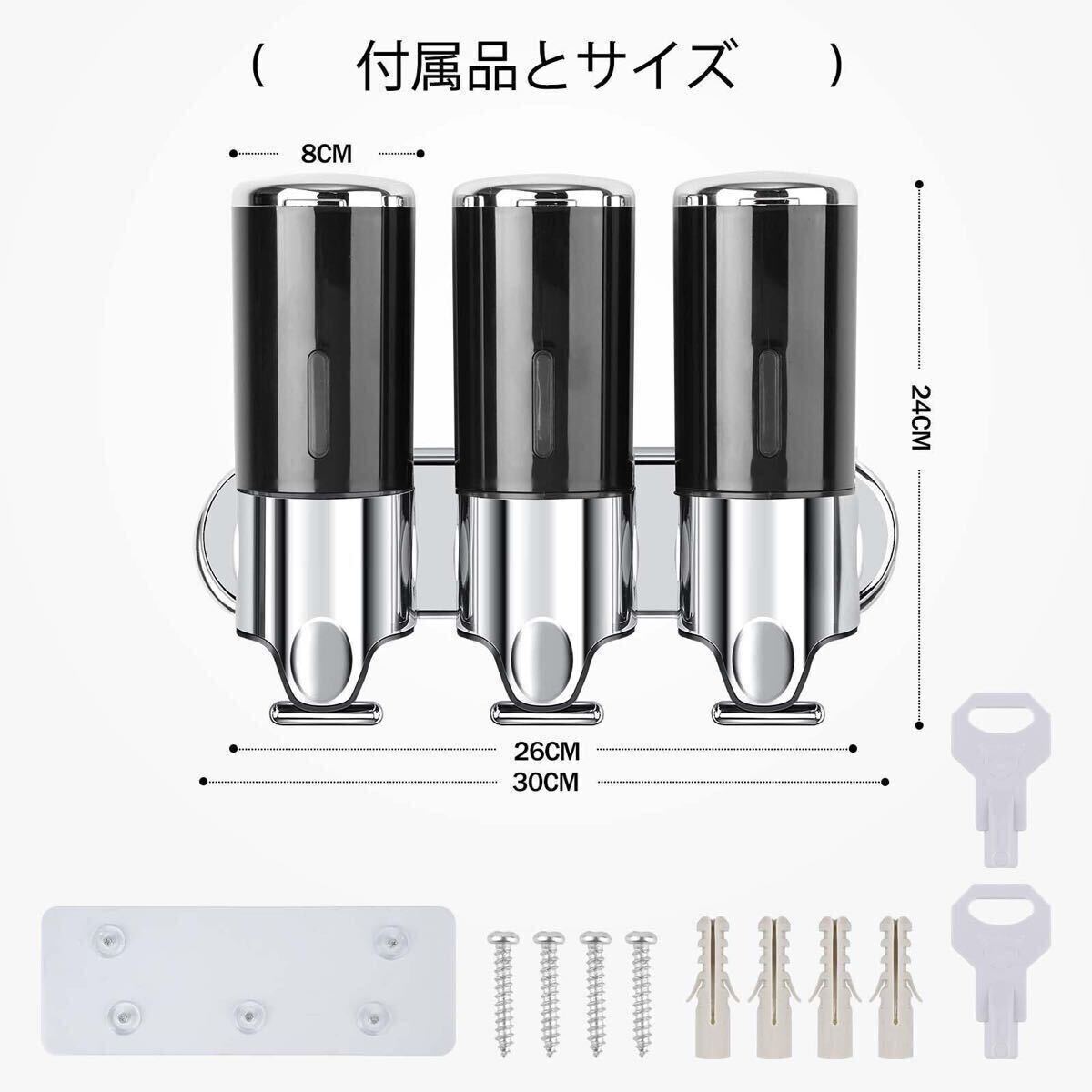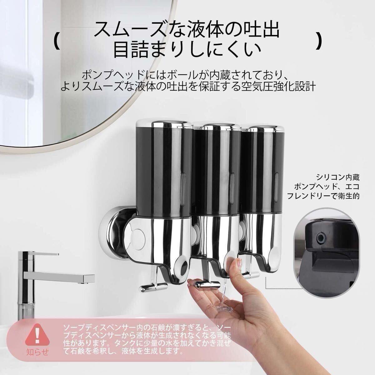 シャンプー、コンディショナー、ボディソープを個別のチャンバーに収納し、シャワーエリアを整理整頓。バスルームをすっきりと保ちます。