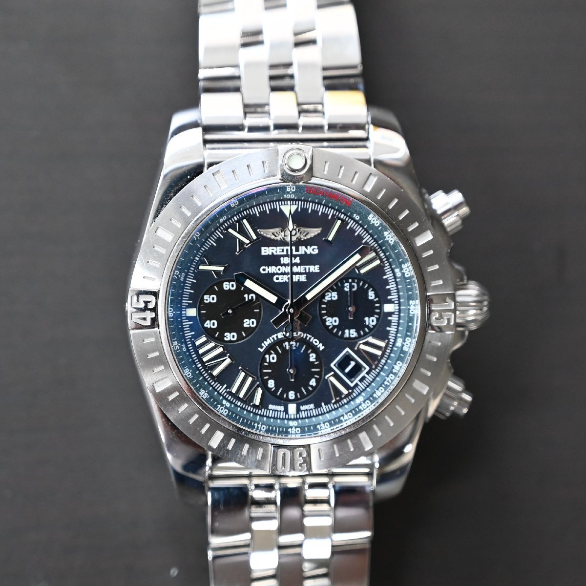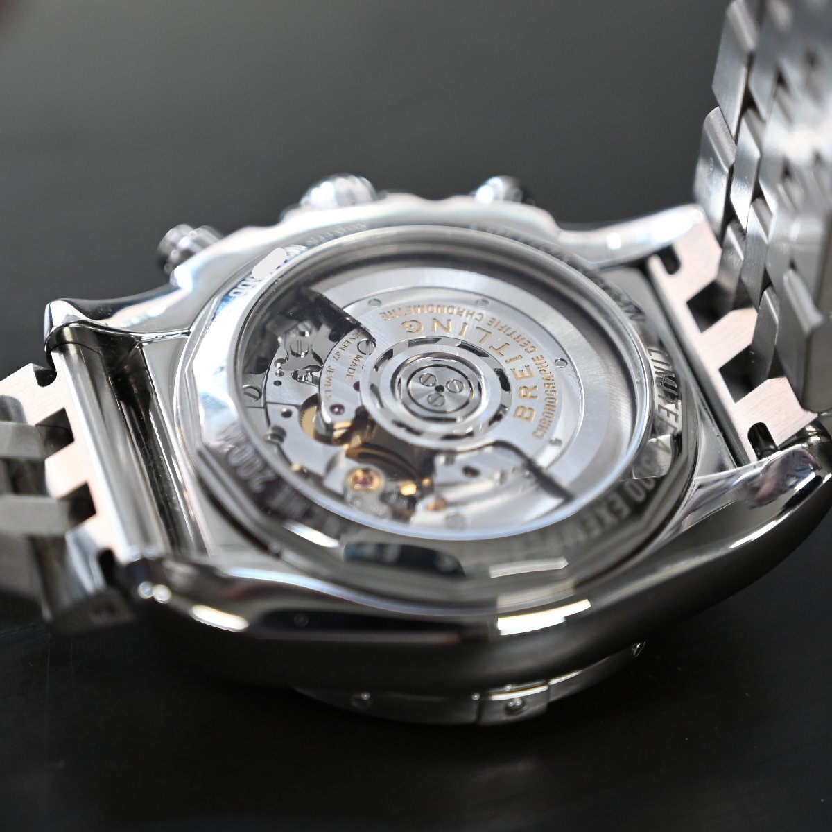 2020年に500本のみ製作されたクロノマット44の日本限定モデルでバックスケルトン仕様にもなってる 希少なモデル、ブラックシェルの文字盤とローマンインデックスの組み合わせは相性抜群です。全体的に小傷はありますが、クリーニング済でおおきな打痕 目立つような傷はありません。日差は平置きで+5秒程