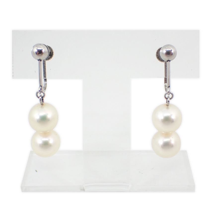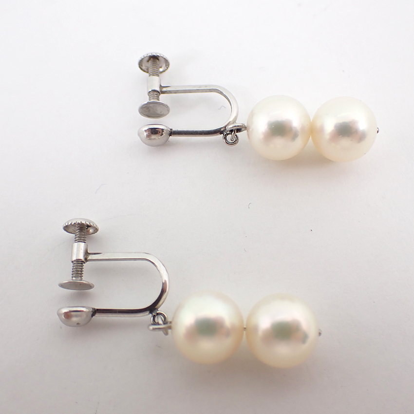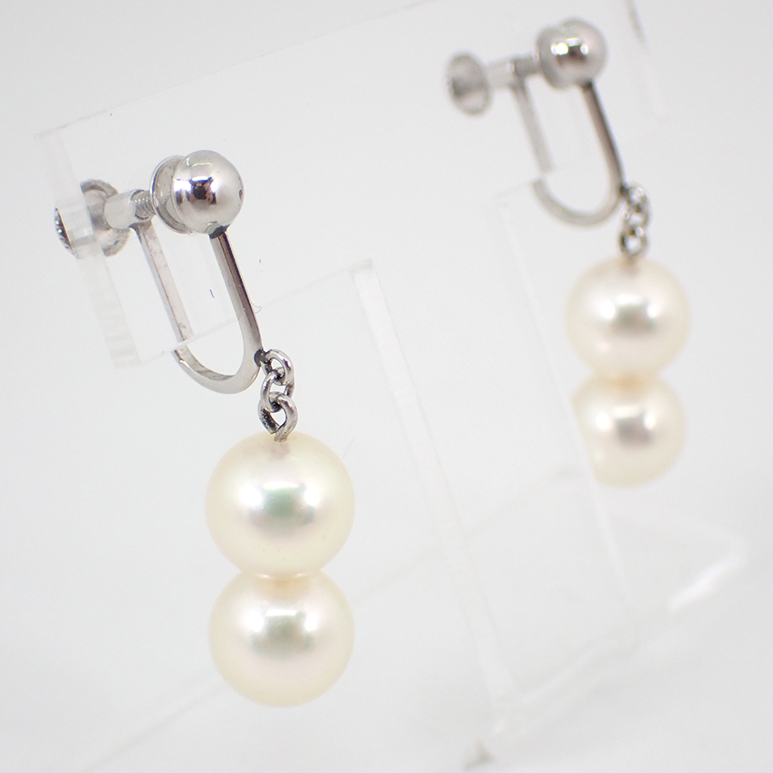 【中古】Pt900 あこや パール 約7.5mm イヤリング/g532-34