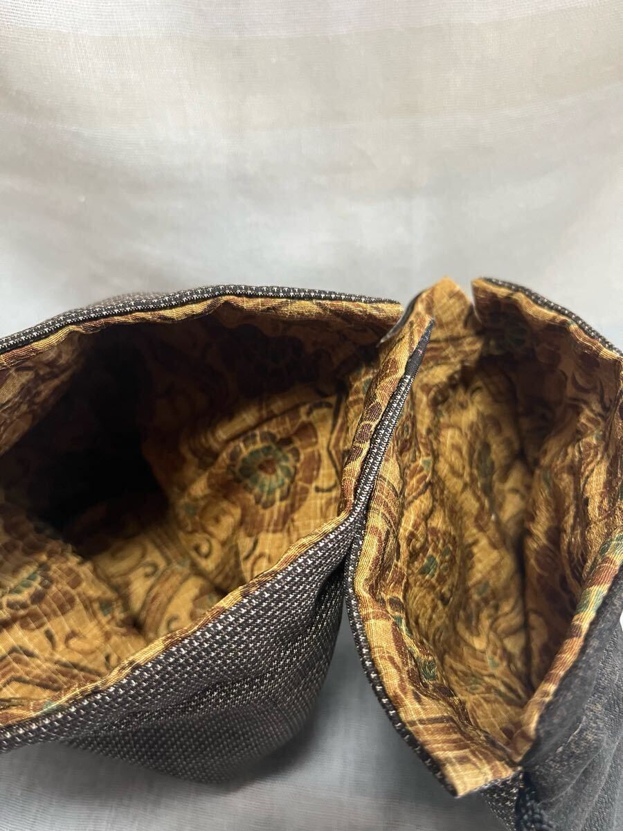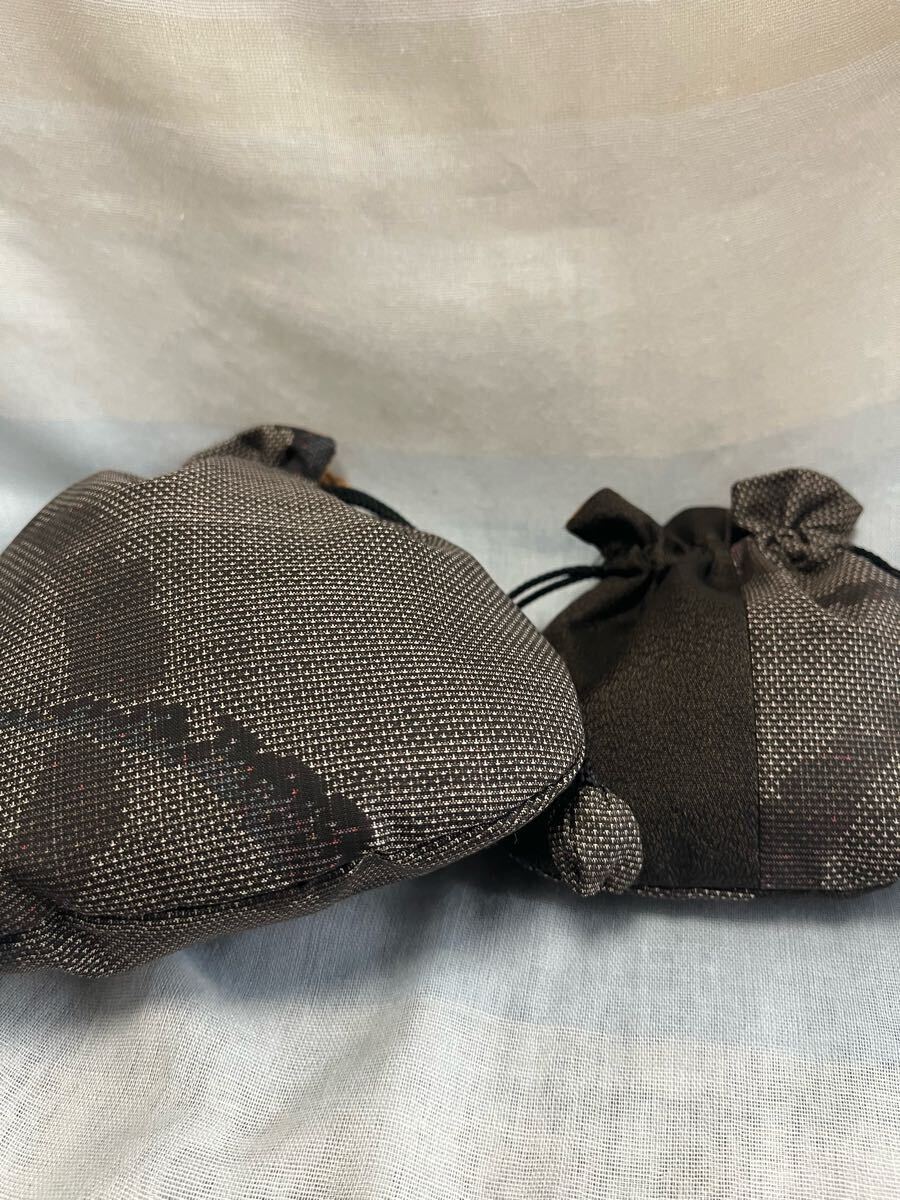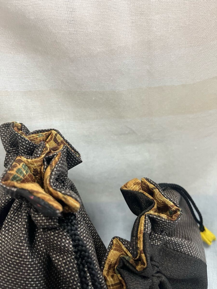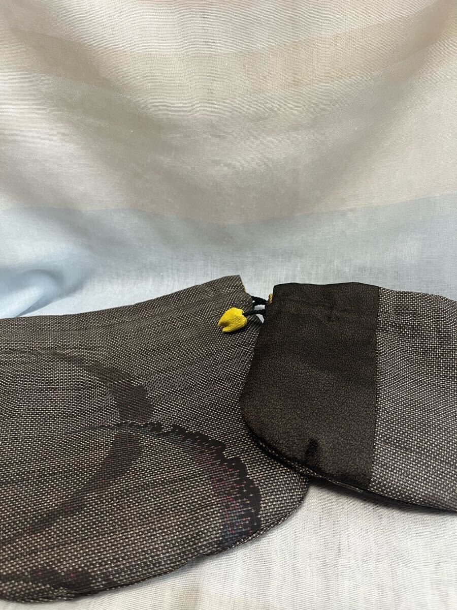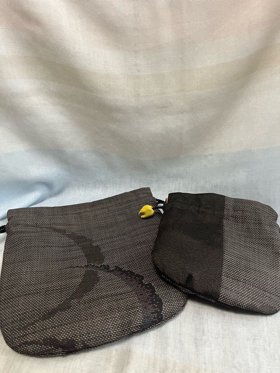 泥大島の着物で作ったサイズ違いの巾着です。