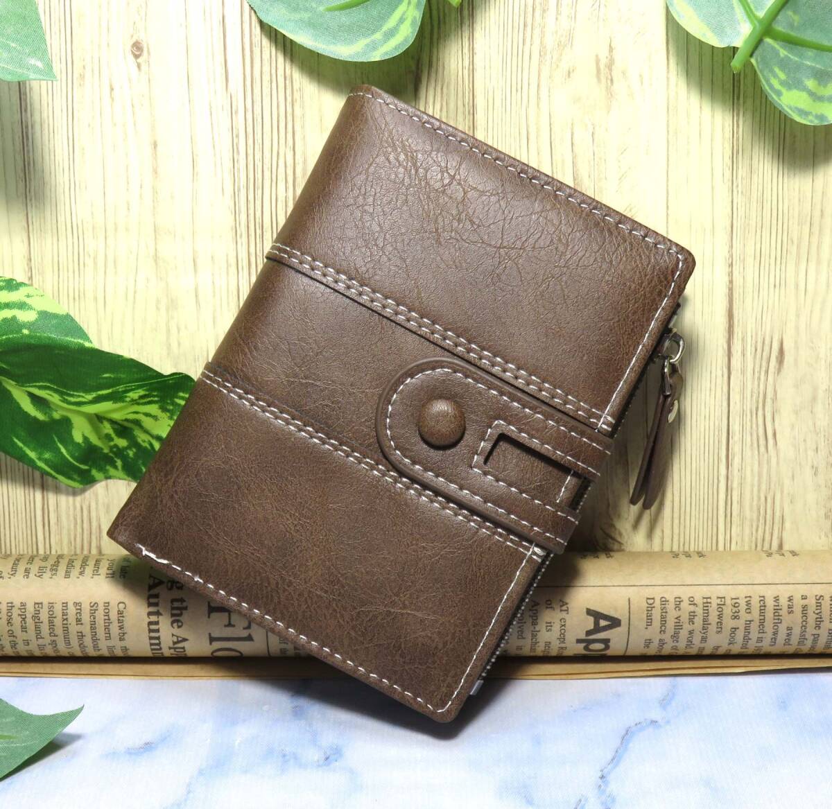 二つ折り メンズ財布、 軽量で高級PUレザー、ファスナー付き大容量小銭入れ 、お洒落で大人に人気色、自分用はもちろん、プレゼントにもお勧めです