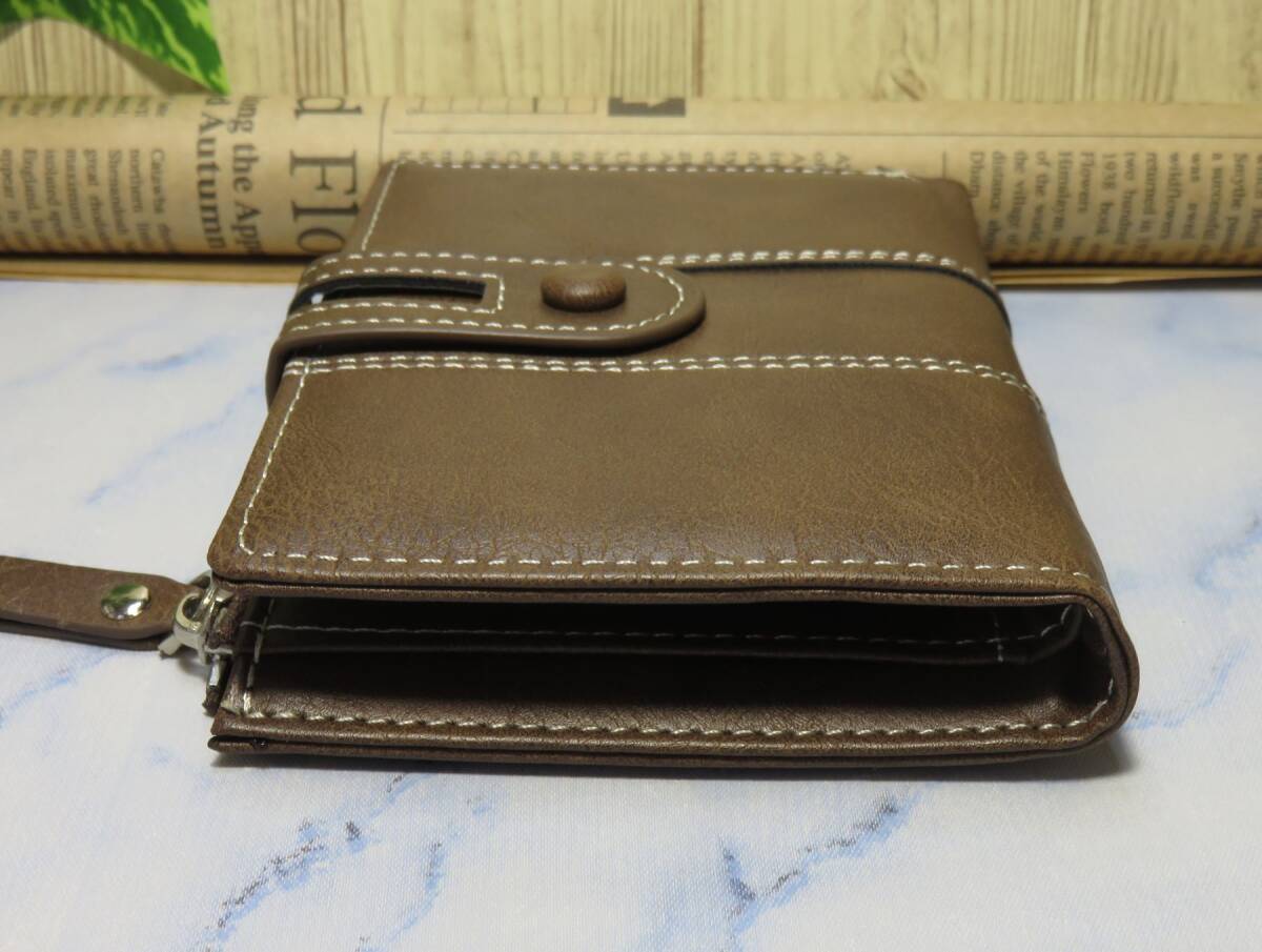 二つ折りメンズ 財布 高級PUレザー コンパクト 軽い 軽量 高級感*新品*当日発送(カーキ)